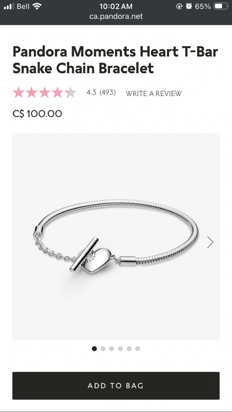 Sterling silver snake chain bracelet with a heart T-bar closure. Comes with original box and bag.