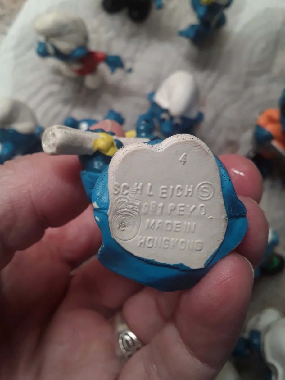 Most made in Hong Kong and a few in Germany. As always, only one smurfette!!π