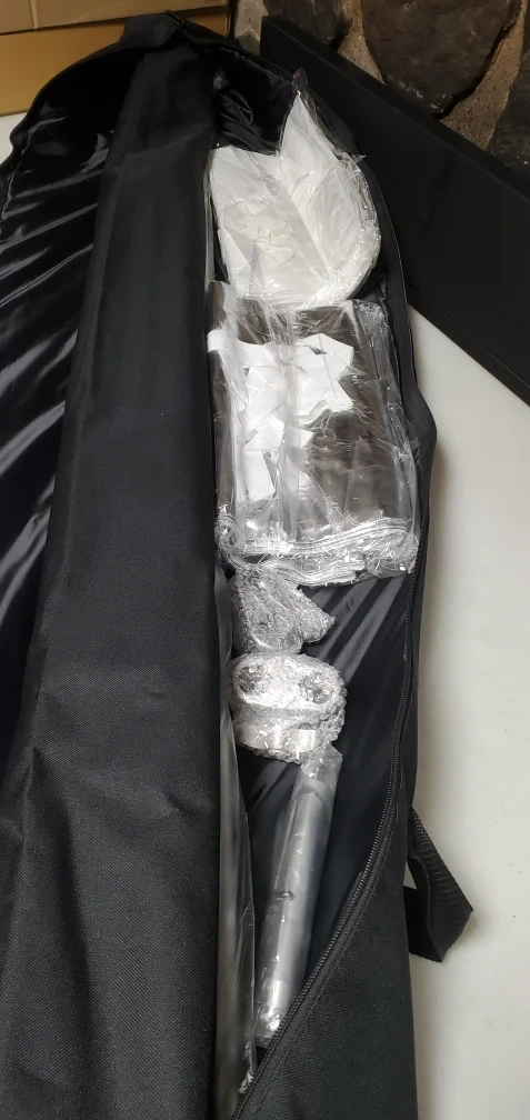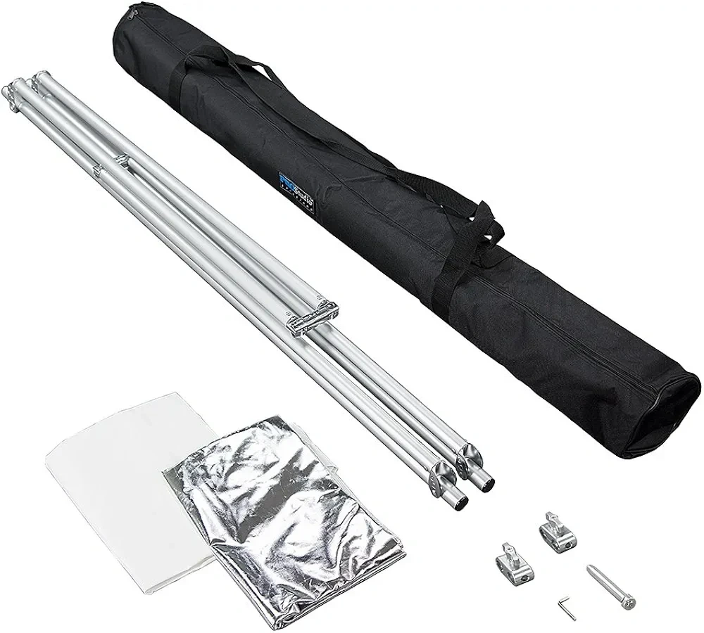 444brand new in the box retails for $260 +taxes Collapsible aluminum frame, light weight despite its size The folding frame easily assembles in seconds Use as a hand-held overhead 2-stop diffuser Can be used as diffusor or reflector with included translucent and s/w reflective fabric