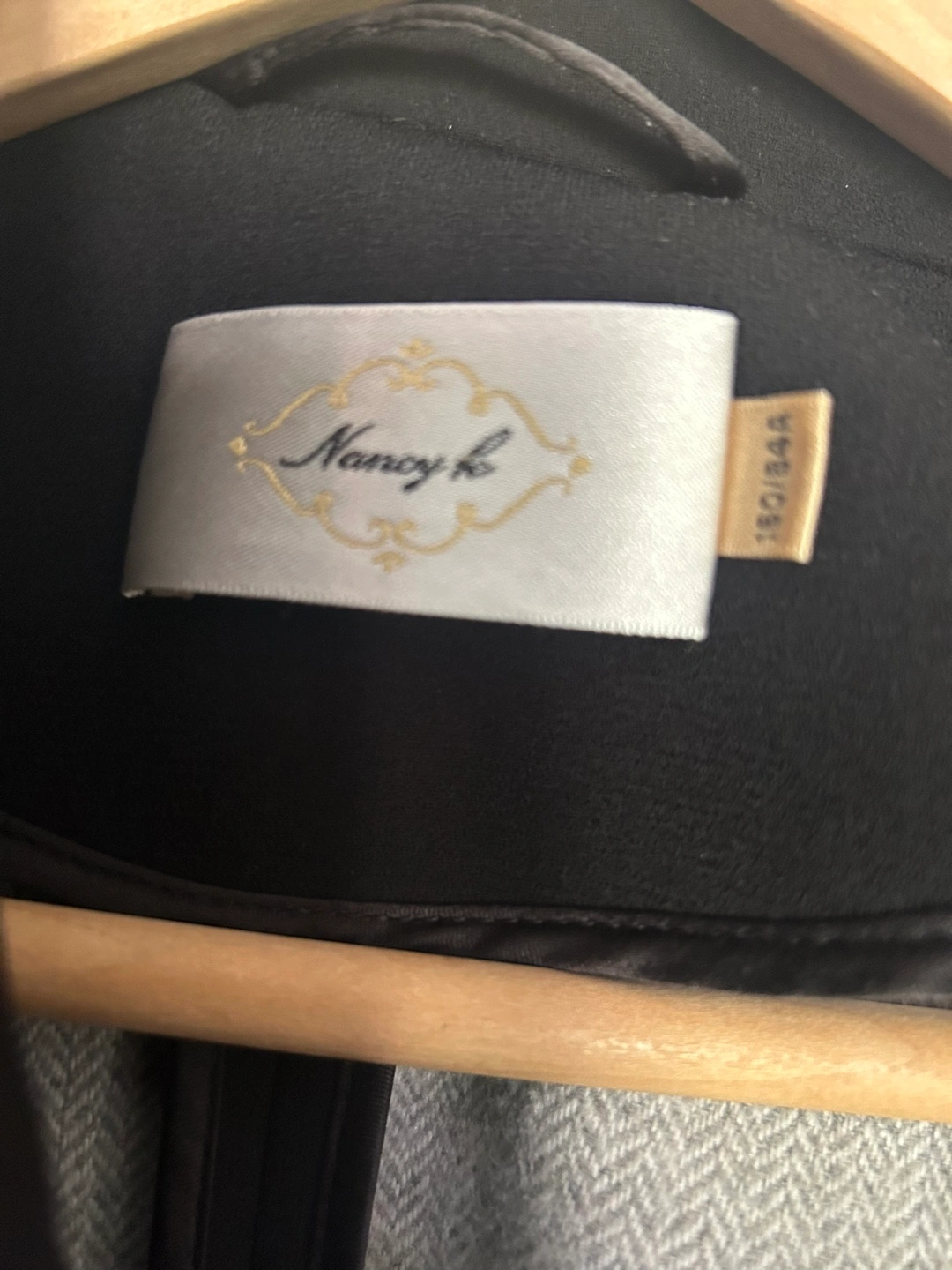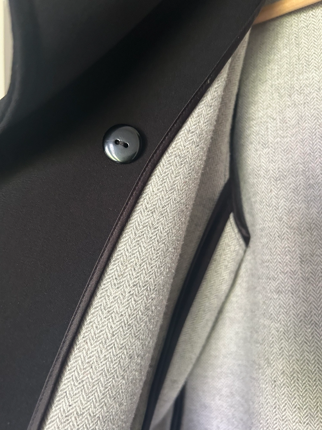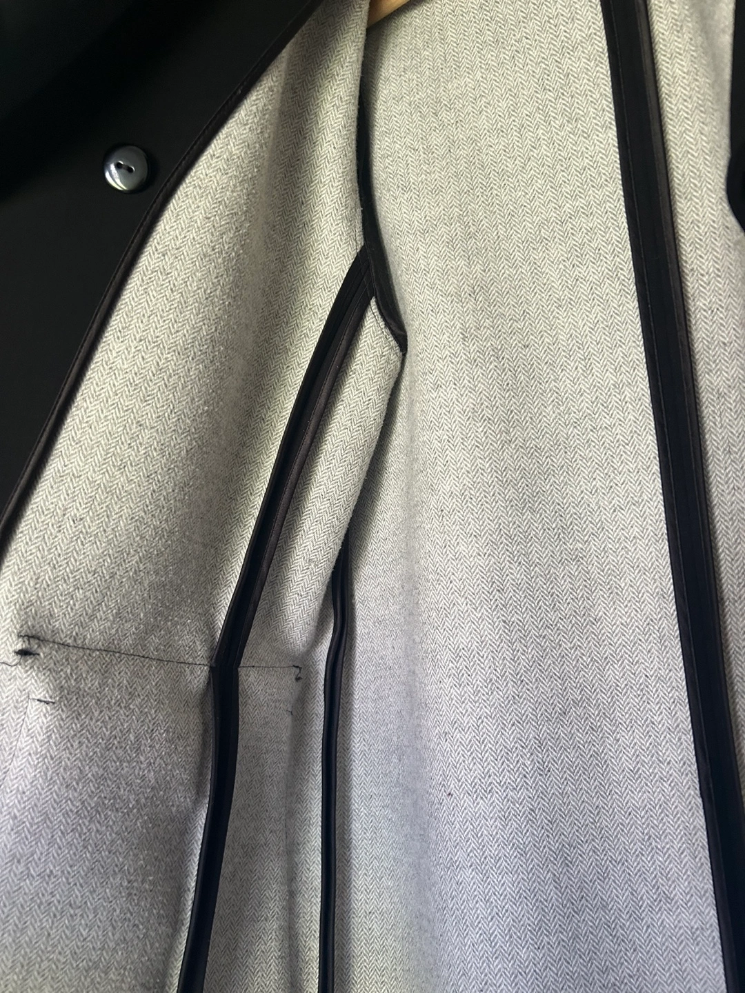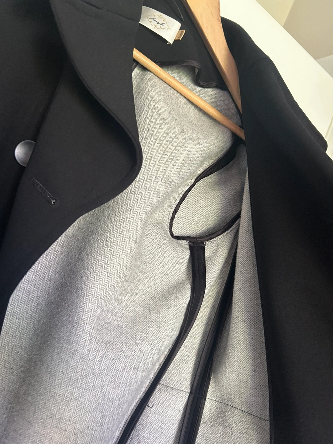 1000+Black double breasted coat with pockets. Long sleeves. Classic style. 7/8 sleeves
