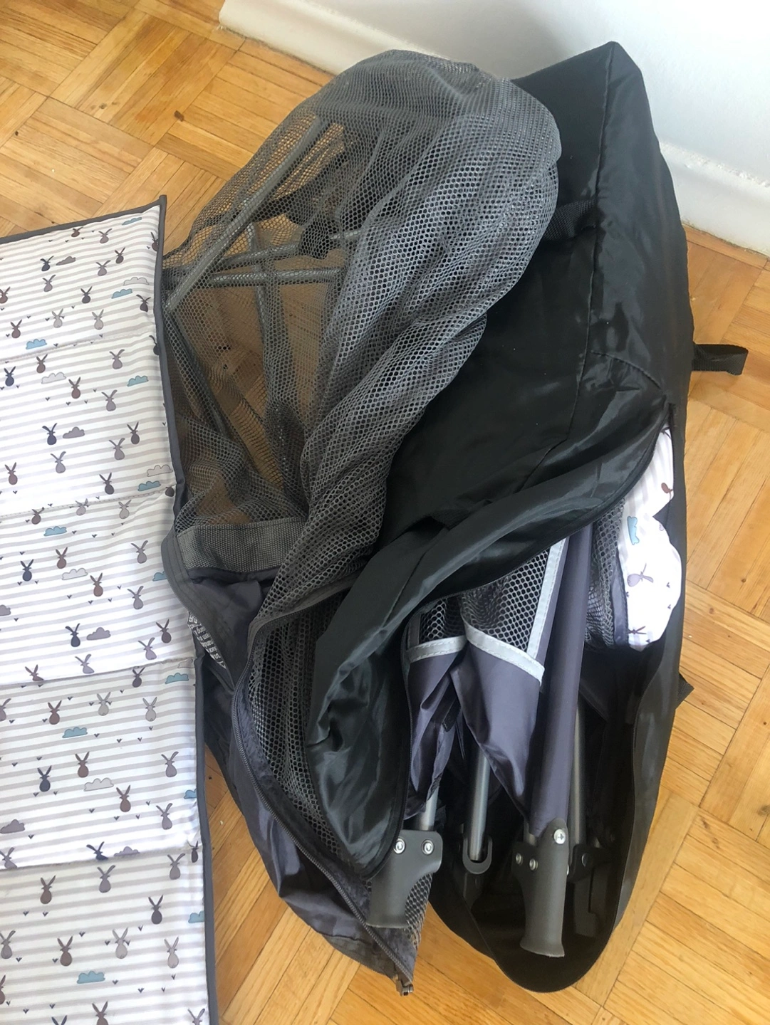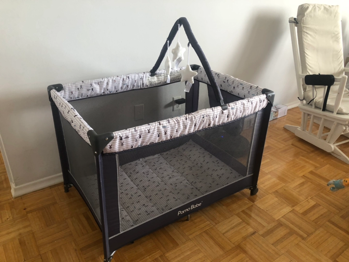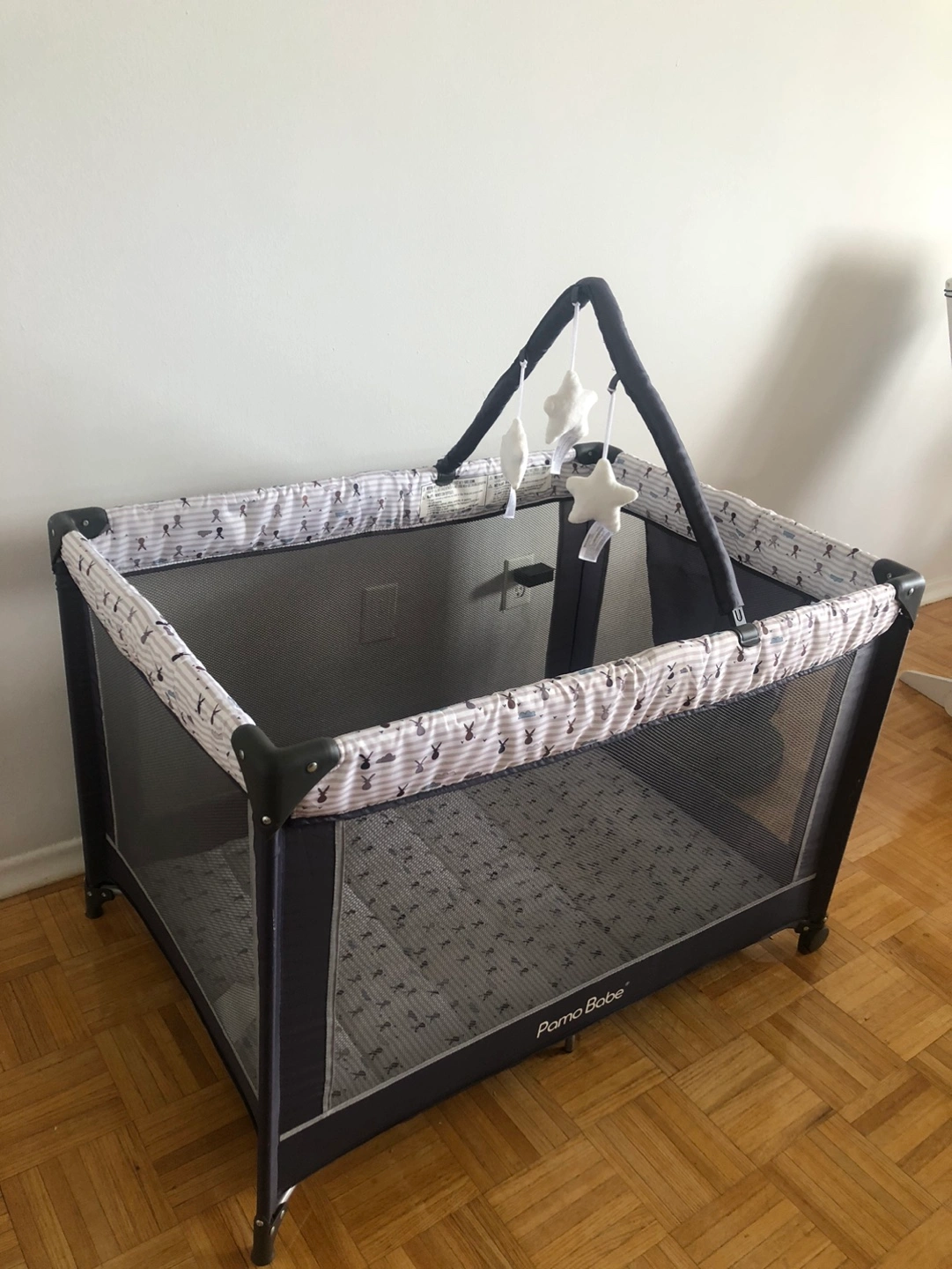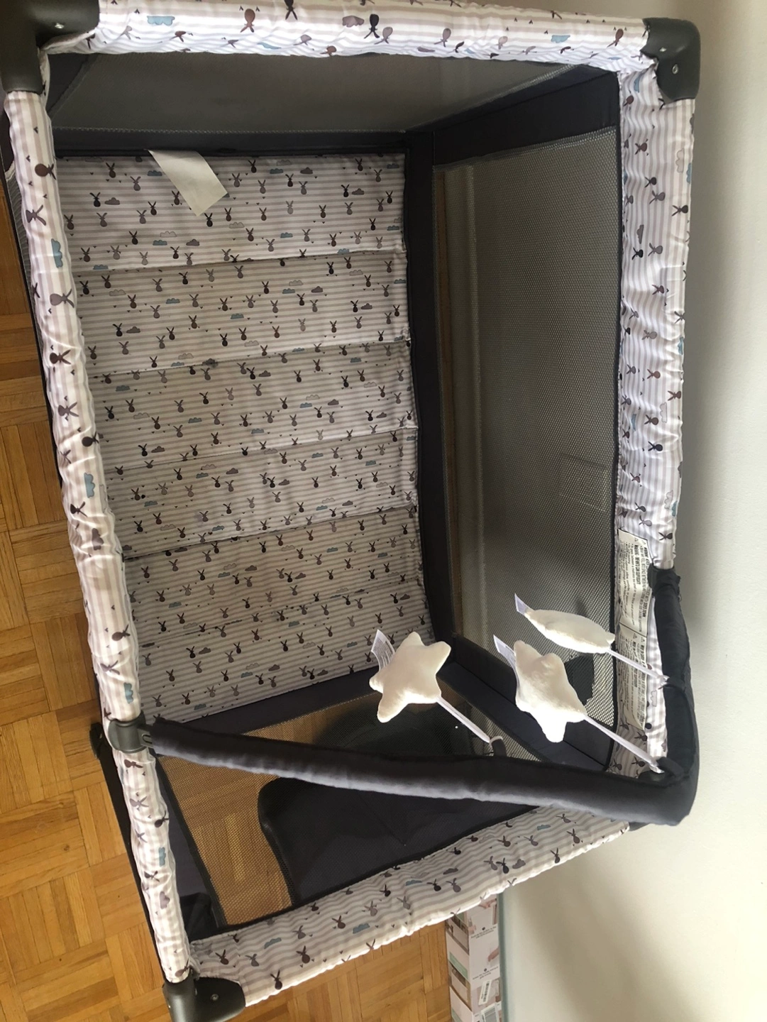 It’s a portable multipurpose playpen with a mattress. You can use it as a crib and also as a playpen. It suitable for newborn stage until until baby starts to pull and stand (roughly 10 months). It’s in a very good condition.