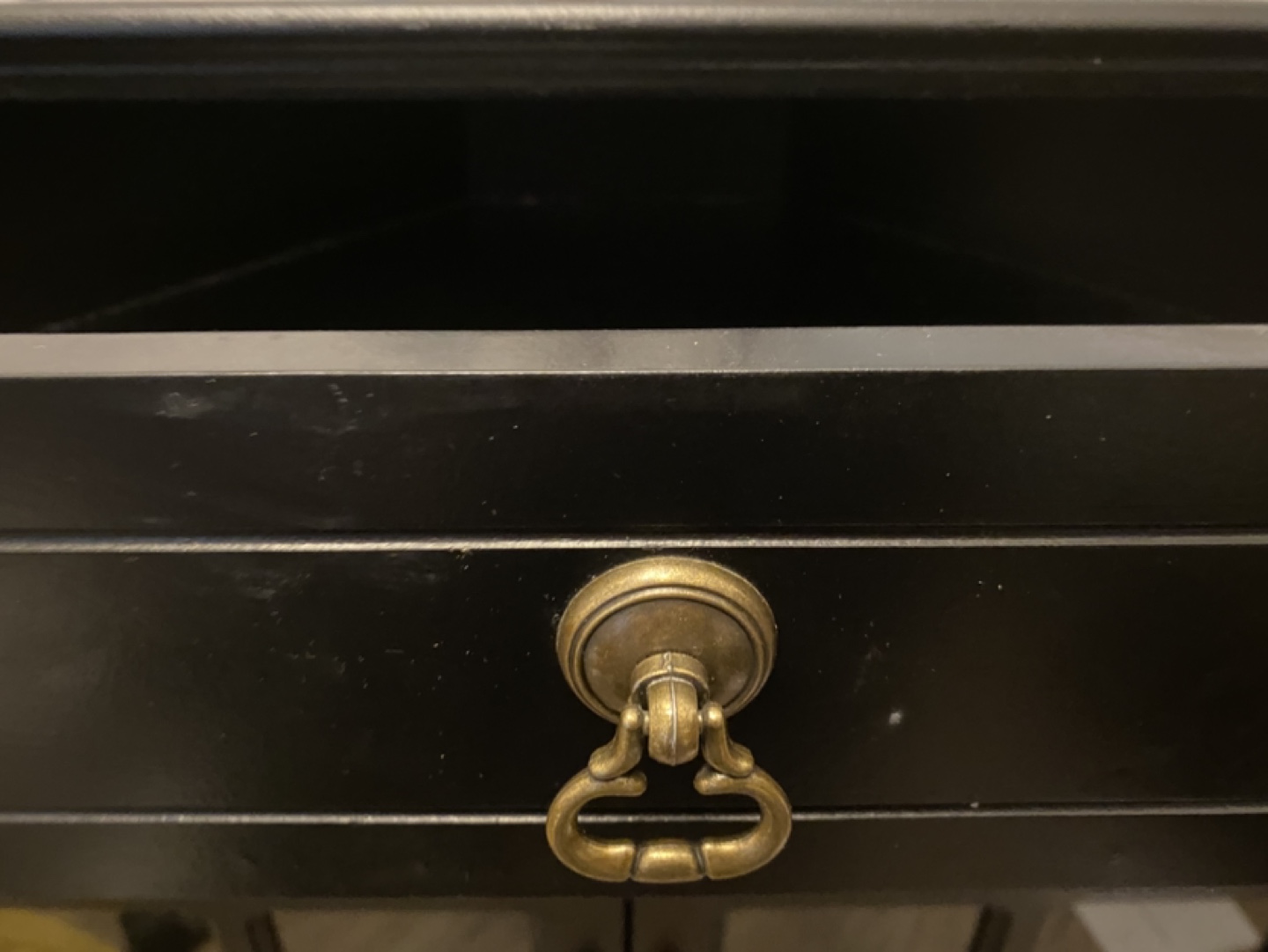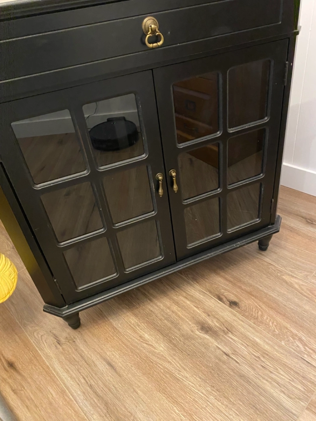 No outer scratches or dents. Great for a front hallway, powder room, or office. I’ve used in the hallway to display seasonal flowers and storage in the cabinet itself.