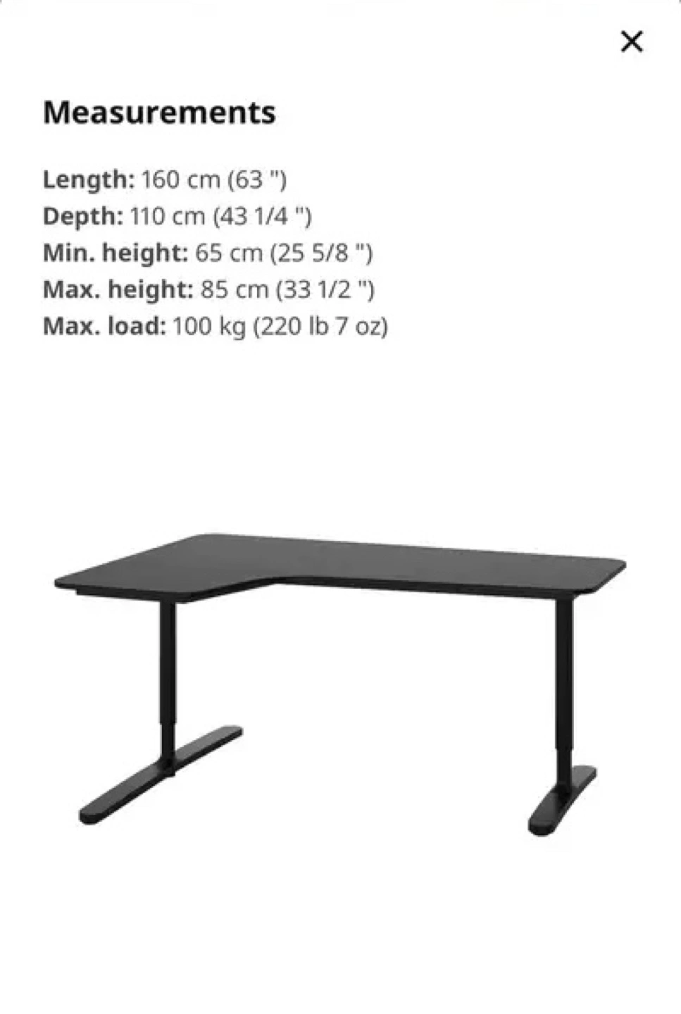 IKEA BEKANT Corner Desk Adjustable Gaming/Office Desk - Black