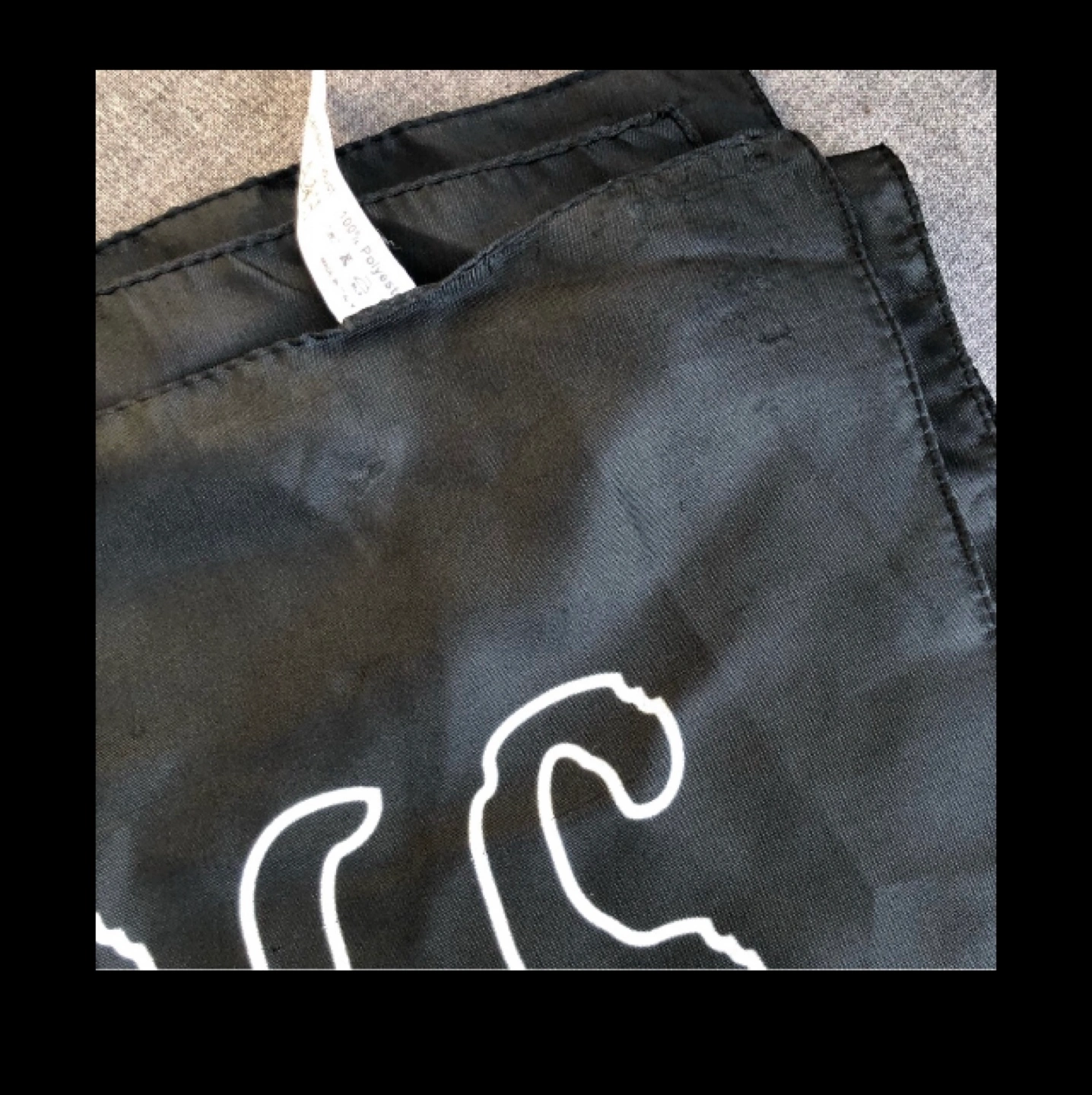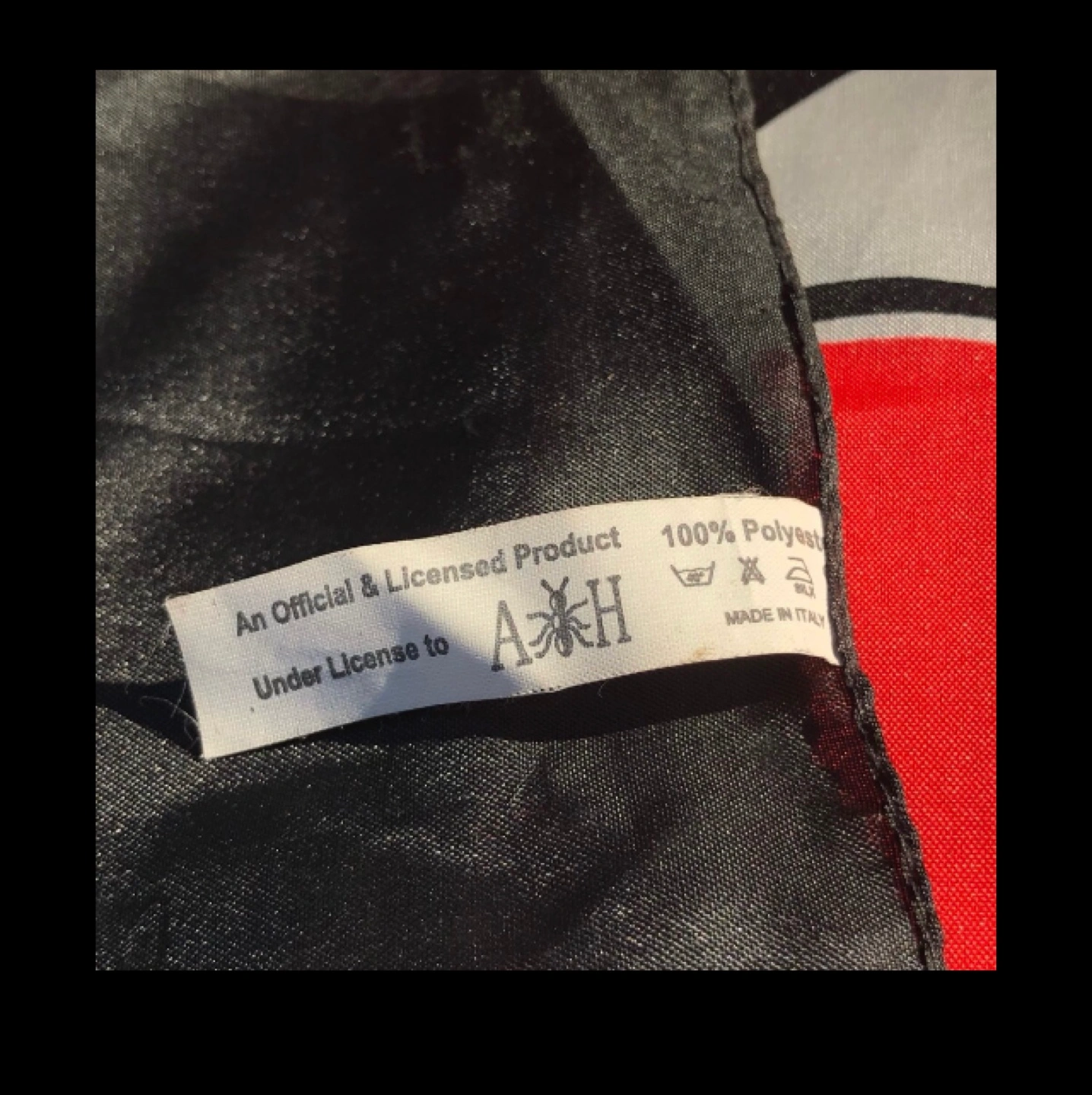 Rolling Stones 2005 Tour Bandana, a must-have for any fan of the legendary rock band. This unique piece of memorabilia features the iconic Rolling Stones logo. Made of 100% polyester, this bandana measures 30 x 40 inches and is made in Italy. Some minor damage (see photos).