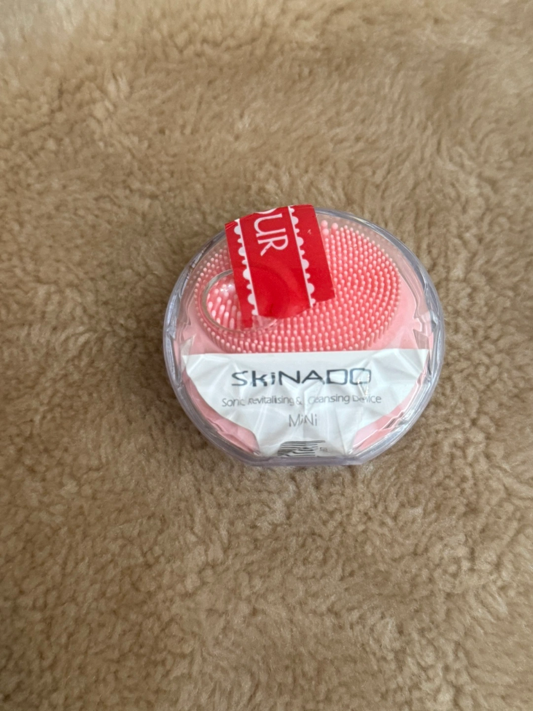 Skinado Mini Sonic Revitalizing & Cleansing Device. Peach colour.