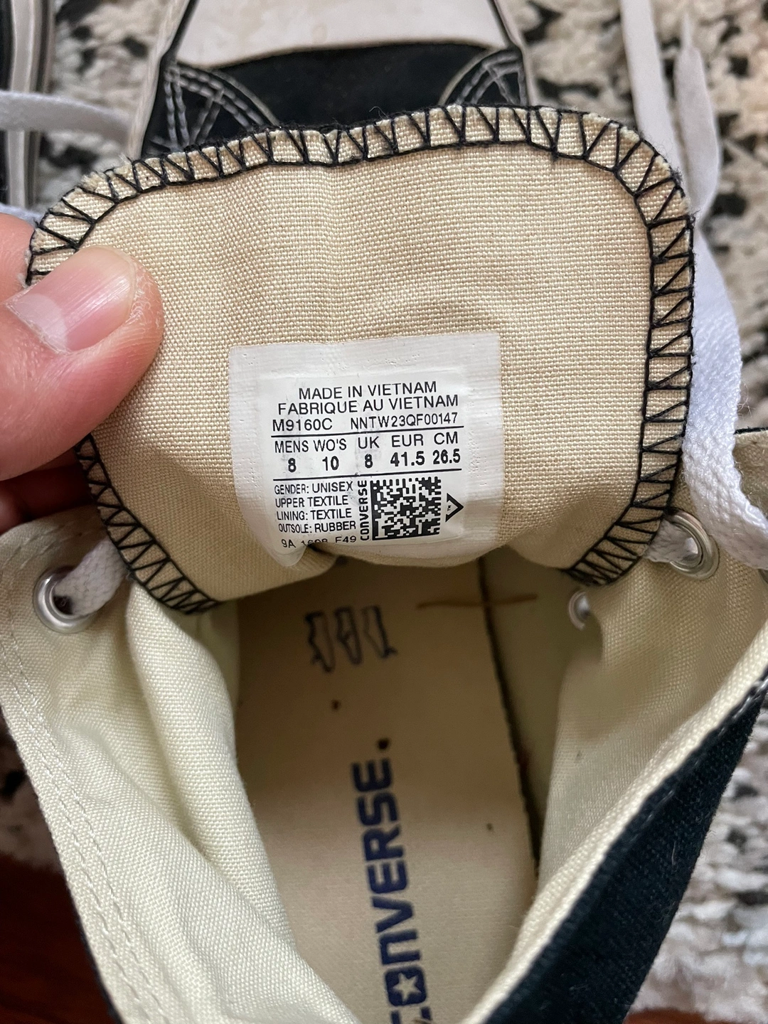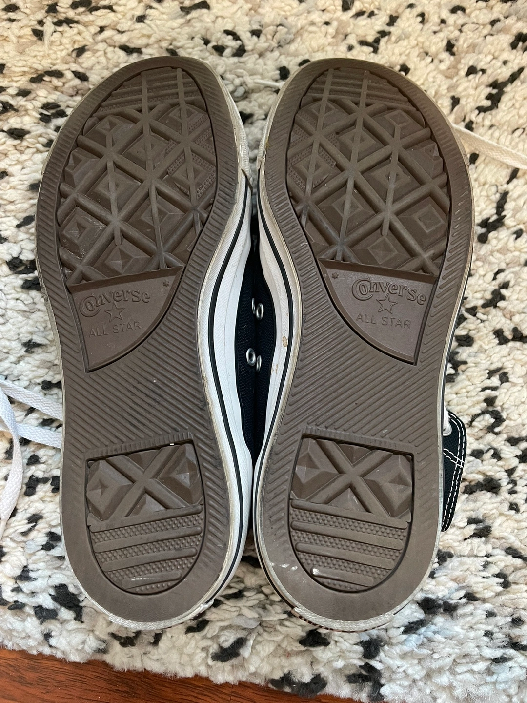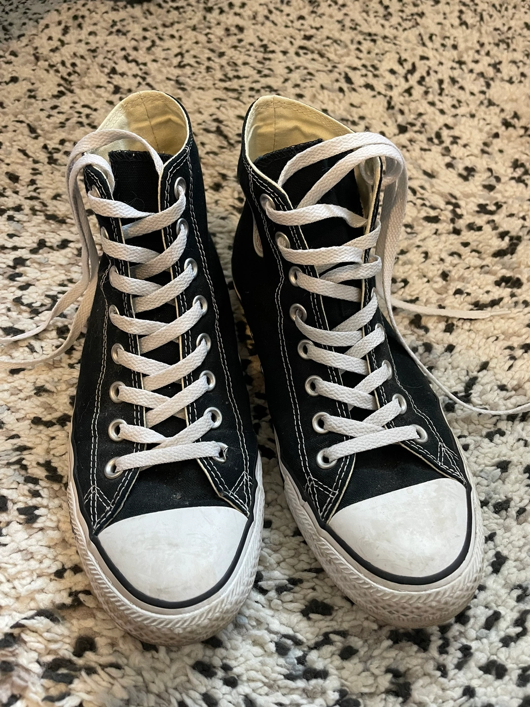 Black high top sneakers with white laces and white sole. Size 8. Only wear a few times.