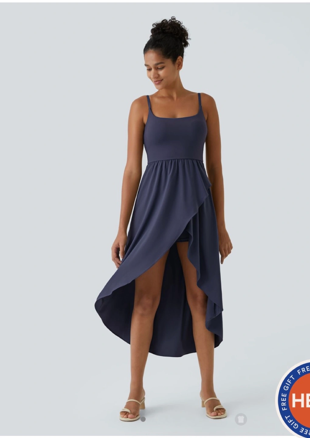 Breezeful™ Backless High Low 2-Piece Side Pocket Flowy Midi Quick Dry Casual Dress in