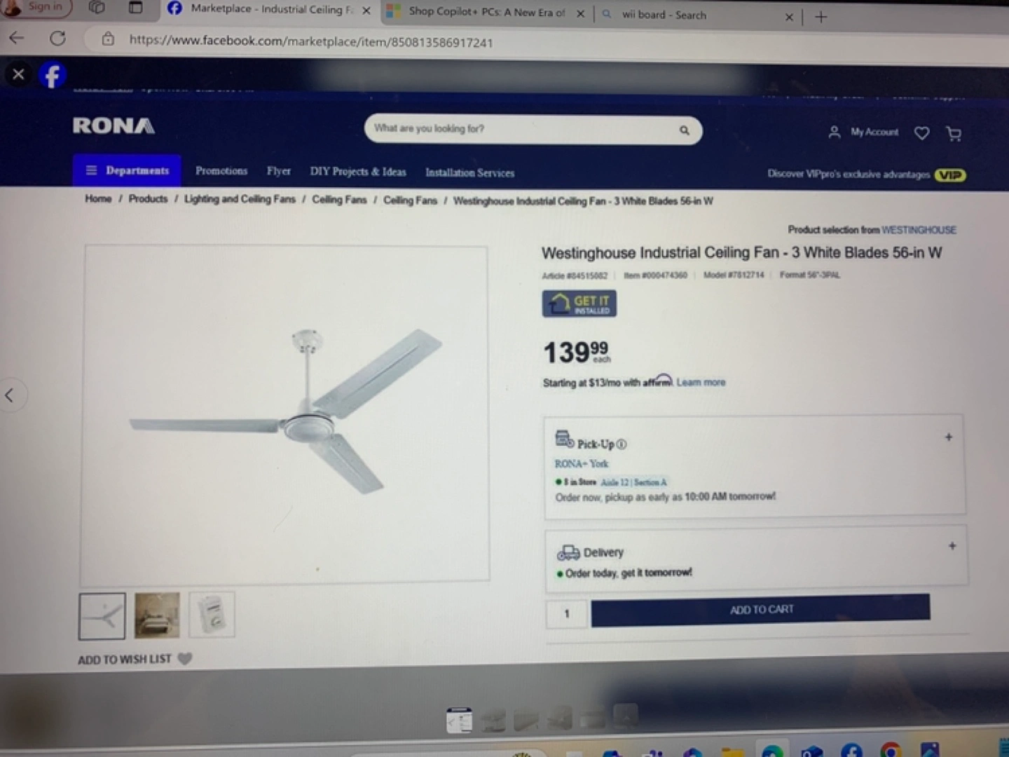 Westinghouse Industrial Ceiling Fan - 3 White Blades 56-in W