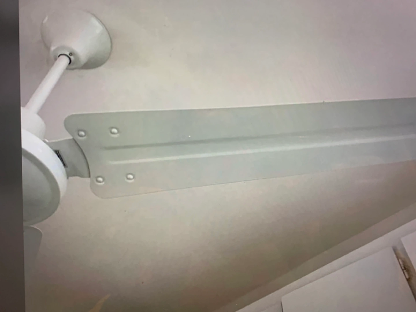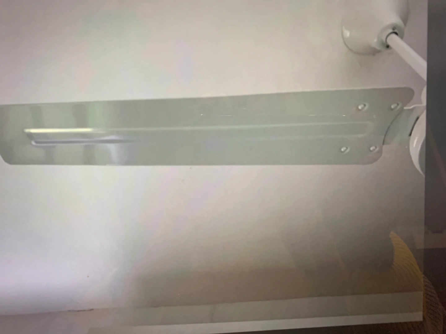 Elegant white finish with long steel blade and a 12-inch down rod included