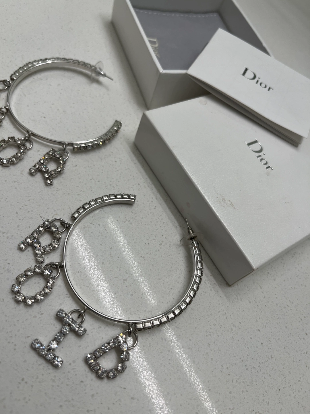 89Hoop rhinestone embellished earrings Brand new w/box All stones in tact Dust bag