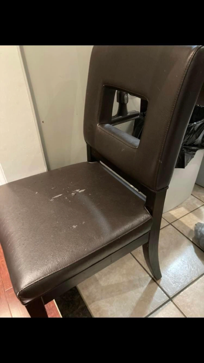 Offering this restaurant grade chair (100K rub count). It is strong structurally but has some peeling on the top. Perhaps someone can refurbish it? Bought it at Costco for $500 for a 2 pack in 2016. If there is interest, I can offer a second that has less peeling to complete the two chair set.