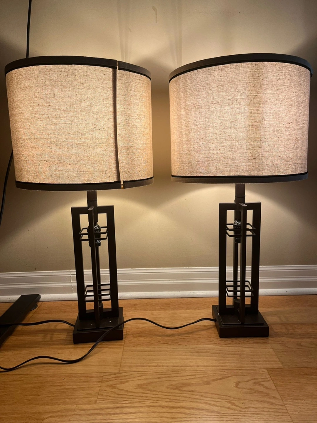 One lamp finial cap is missing that’ll be reflected in price. Can be bought off amazon or use without Finial. Selling for 50$. Negotiable