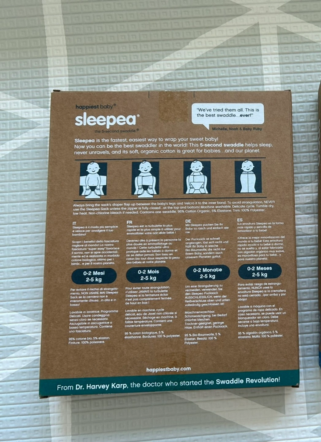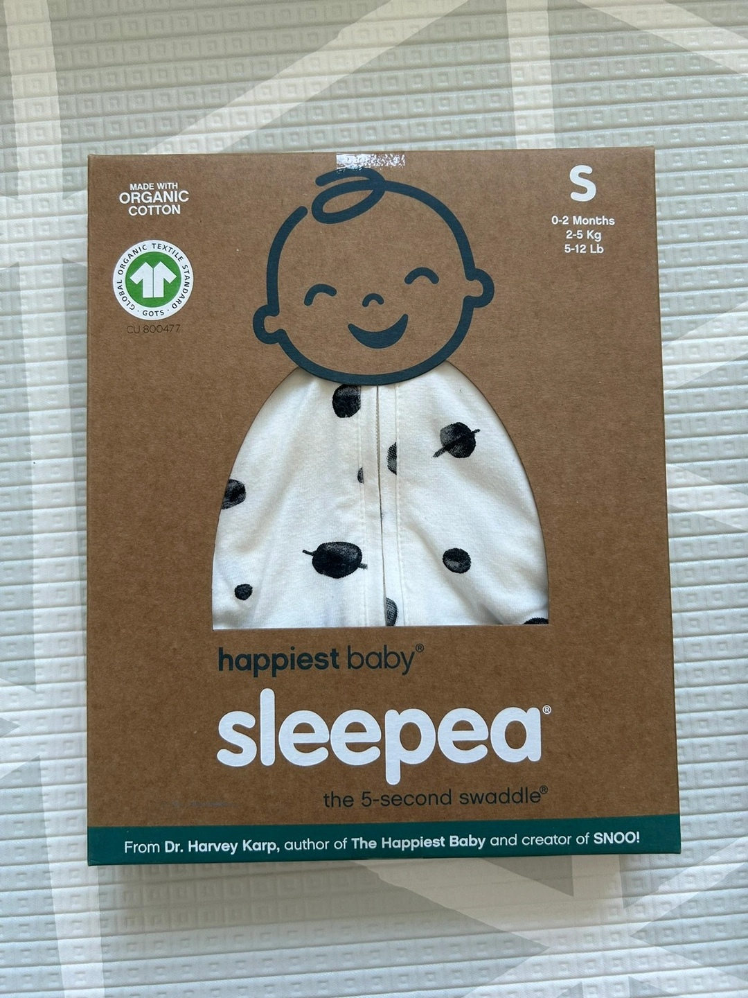 Brand New Sleepea Swaddle (5 second swaddle). We brought the wrong size. It was opened and washed but not used. The material is very comfy and breathable so good for all seasons.