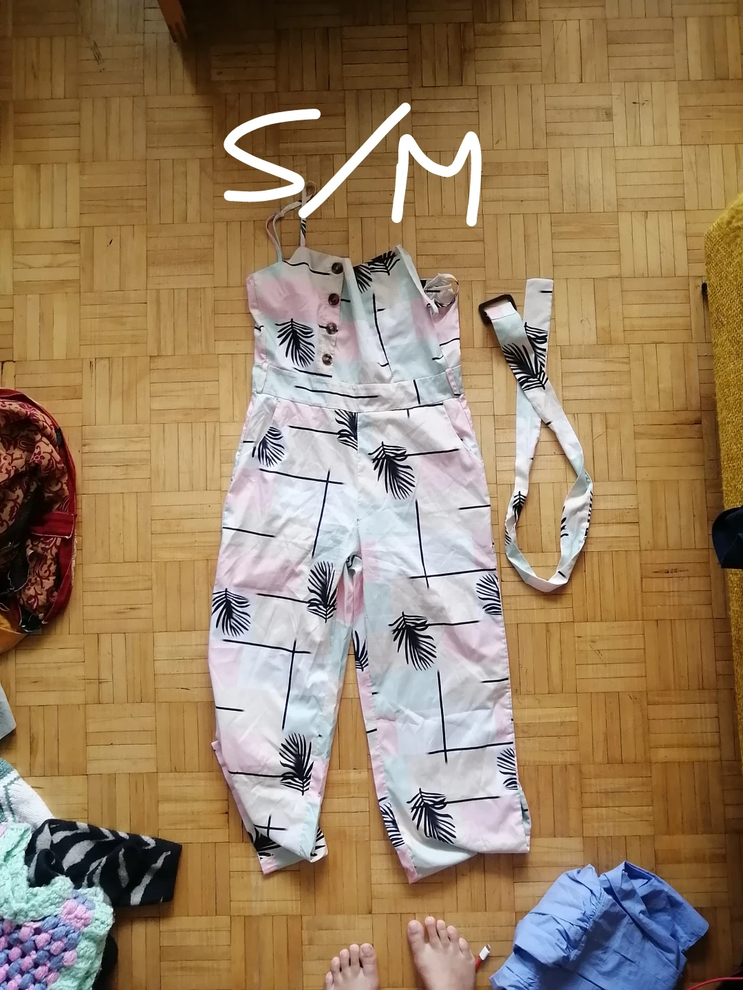 Jumpsuit with a floral print. Size S/M. Has a tie belt, and pockets. $5 each but open to deals. ask for any more details/ measurements. Check out my profile, I have lots of other clothes for sale