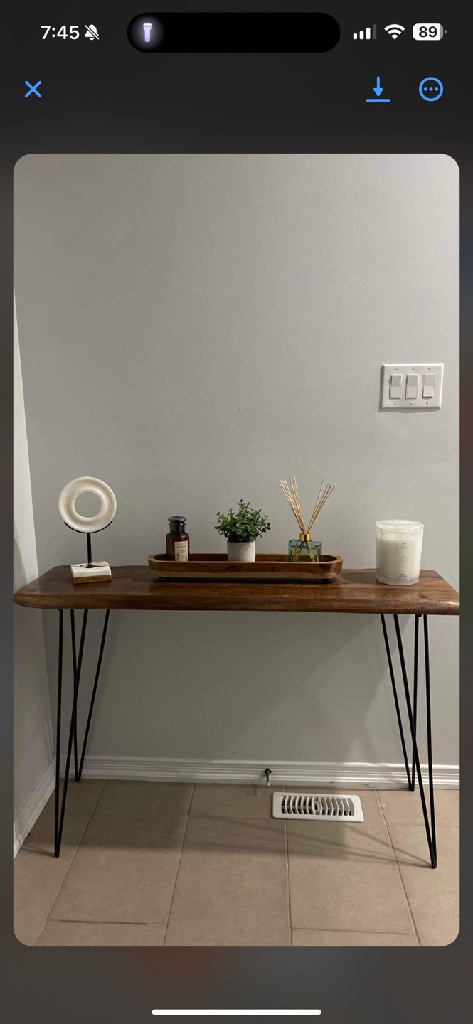 Buy & SellWooden Console Table with Hairpin LegsWooden Console Table with Hairpin Legs$180Almost brand new console table with black hairpin legs. Great for an entryway, hallway or living room.WHERE TO MEETCheck LocationView MapSELLERBevNW Sandalwood Pkwy100 reviews0 chats·2 favorites·44 viewsSEND CHAT TO SELLERHi Bev! I’m interested in your listing.Hi Bev! I’m interested in your listing.Get the Karrot app to chatSign In to chat