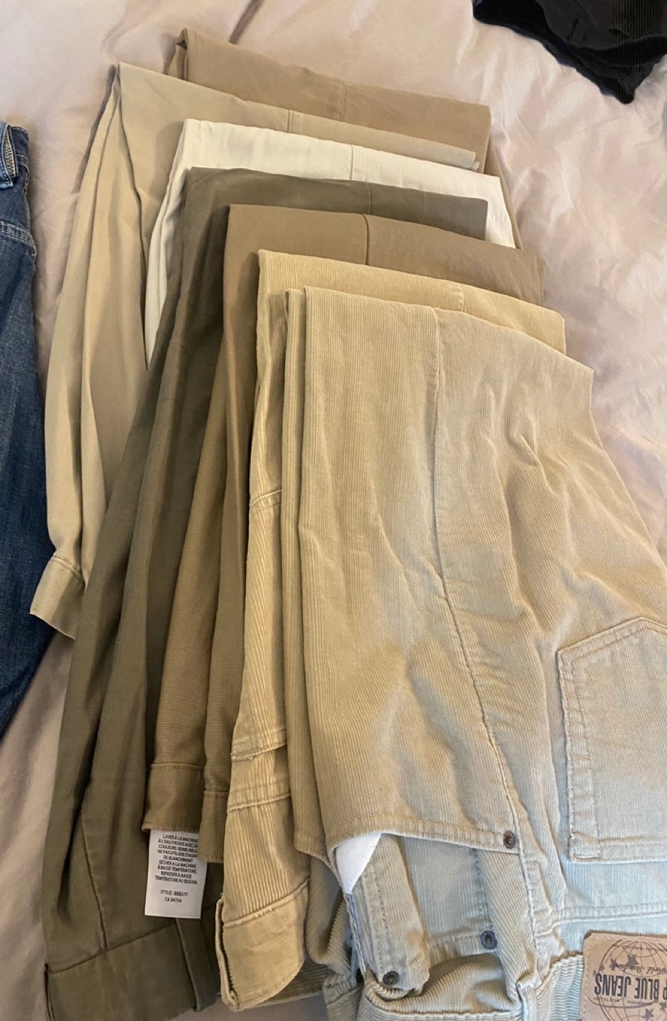Bundle of 7 men's pants, various colours and styles, includes corduroy pants and Cotton chinos.