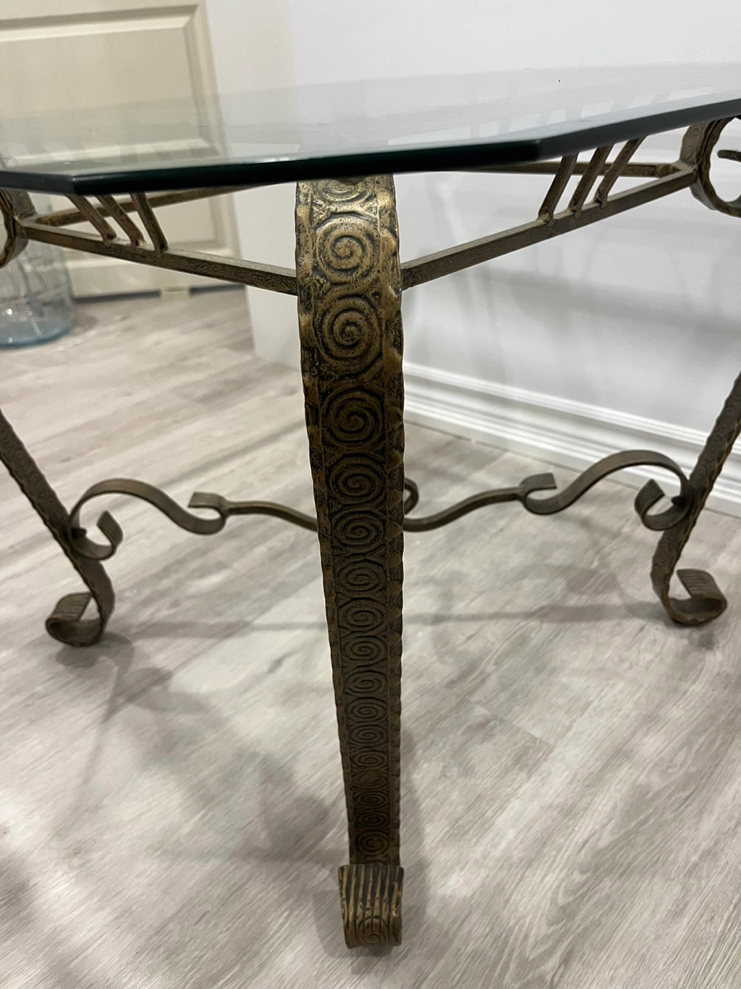 Ornate Glass and Metal Accent Table