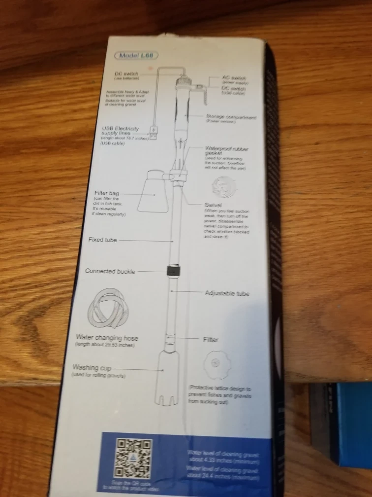 EASY TO USE- Installed gravel cleaner,please keep the water level between the MAX and MIN,then strat switch.When the outlet can draw water,raise the gravel cleaner,let the head and outlet above the water.