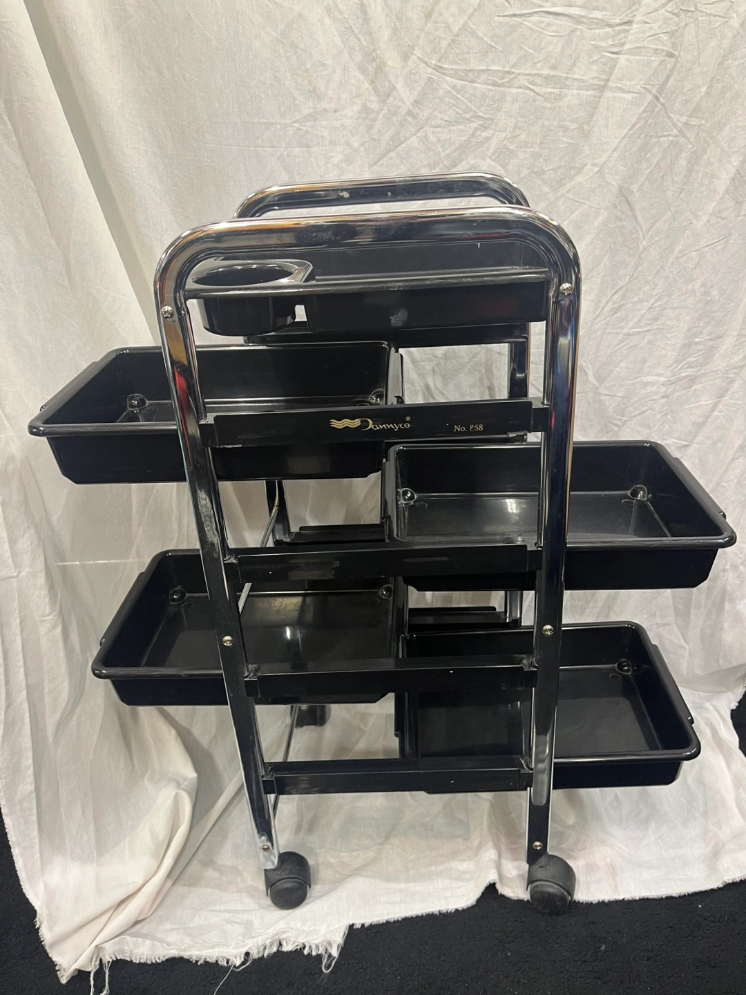 Salon Rolling Cart, Black and Chrome