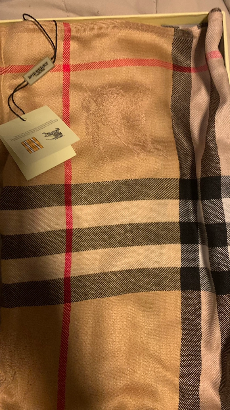New with tags, beige and red check pattern. Embroidered knight logo. If you feel the material of the scarf it melts in your hand it’s a perfect gift for Christmas and I paid over $200 for this and I’m only selling it for 60