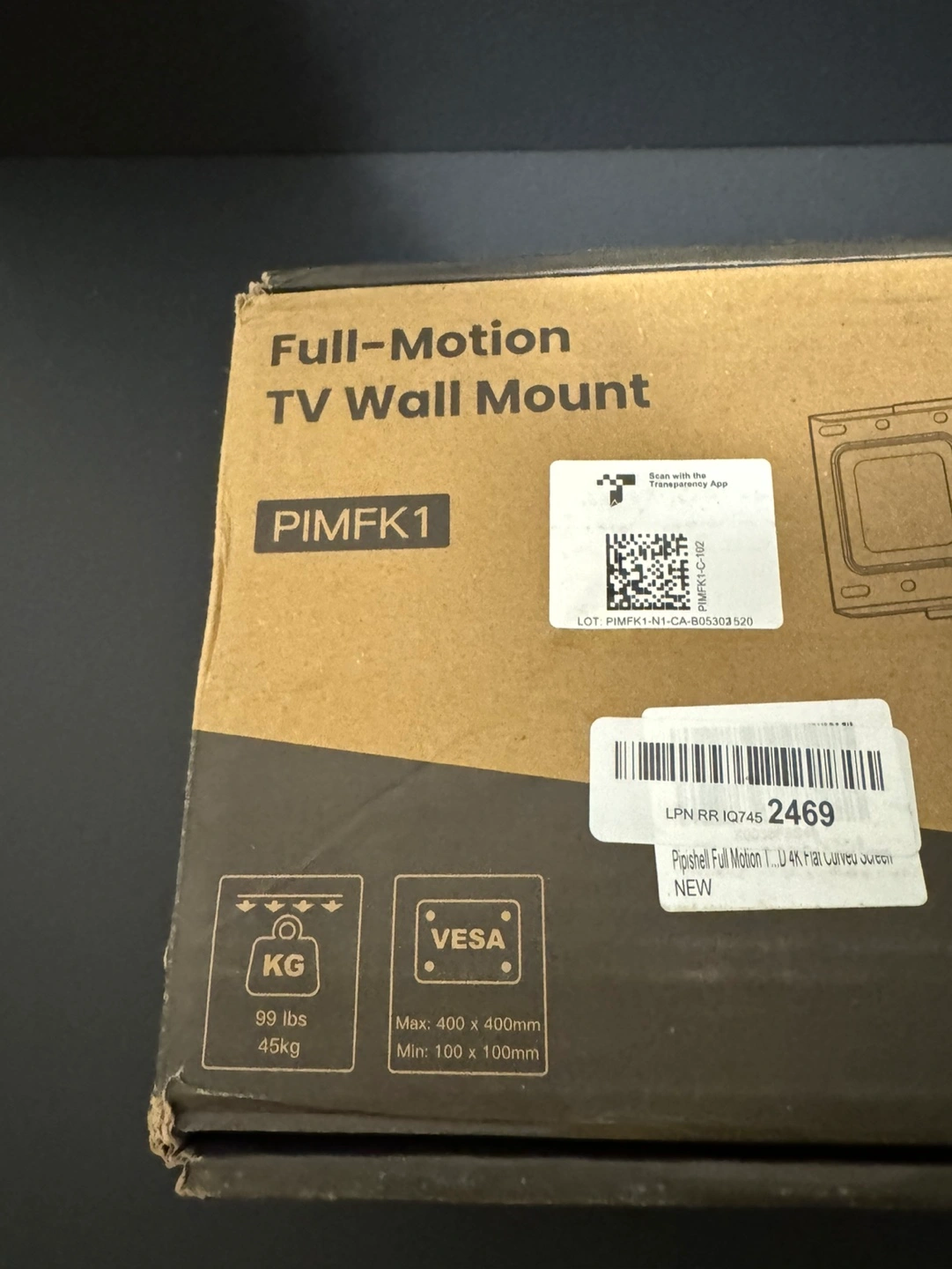 84Full-Motion TV Wall Mount. Includes all hardware and instructions. Supports TVs up to 45 kg (99 lbs). VESA compatible 100x100mm to 400x400mm.