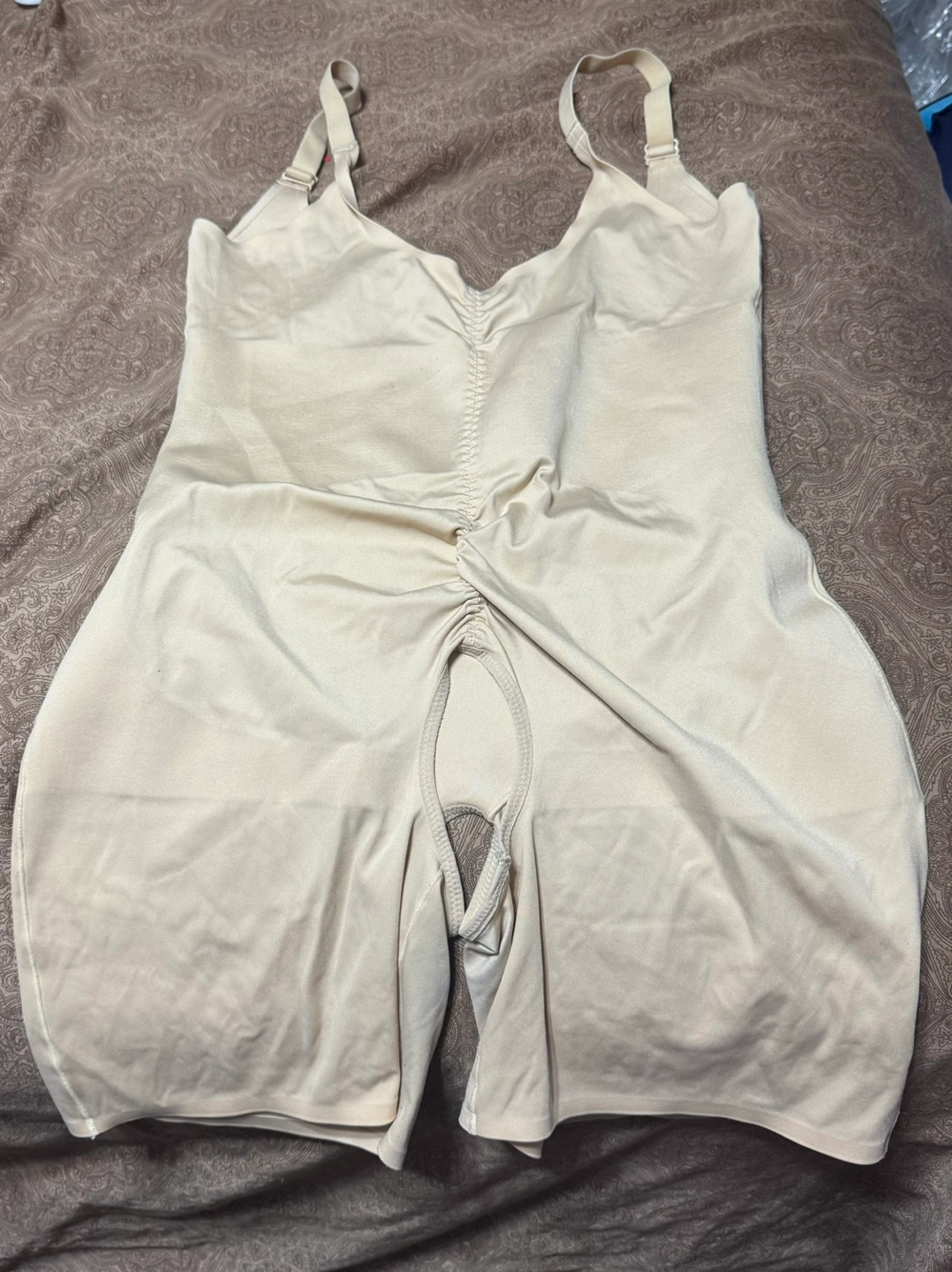 Open-back body shaper with adjustable straps. Perfect for a smooth look under dresses. Size Medium.