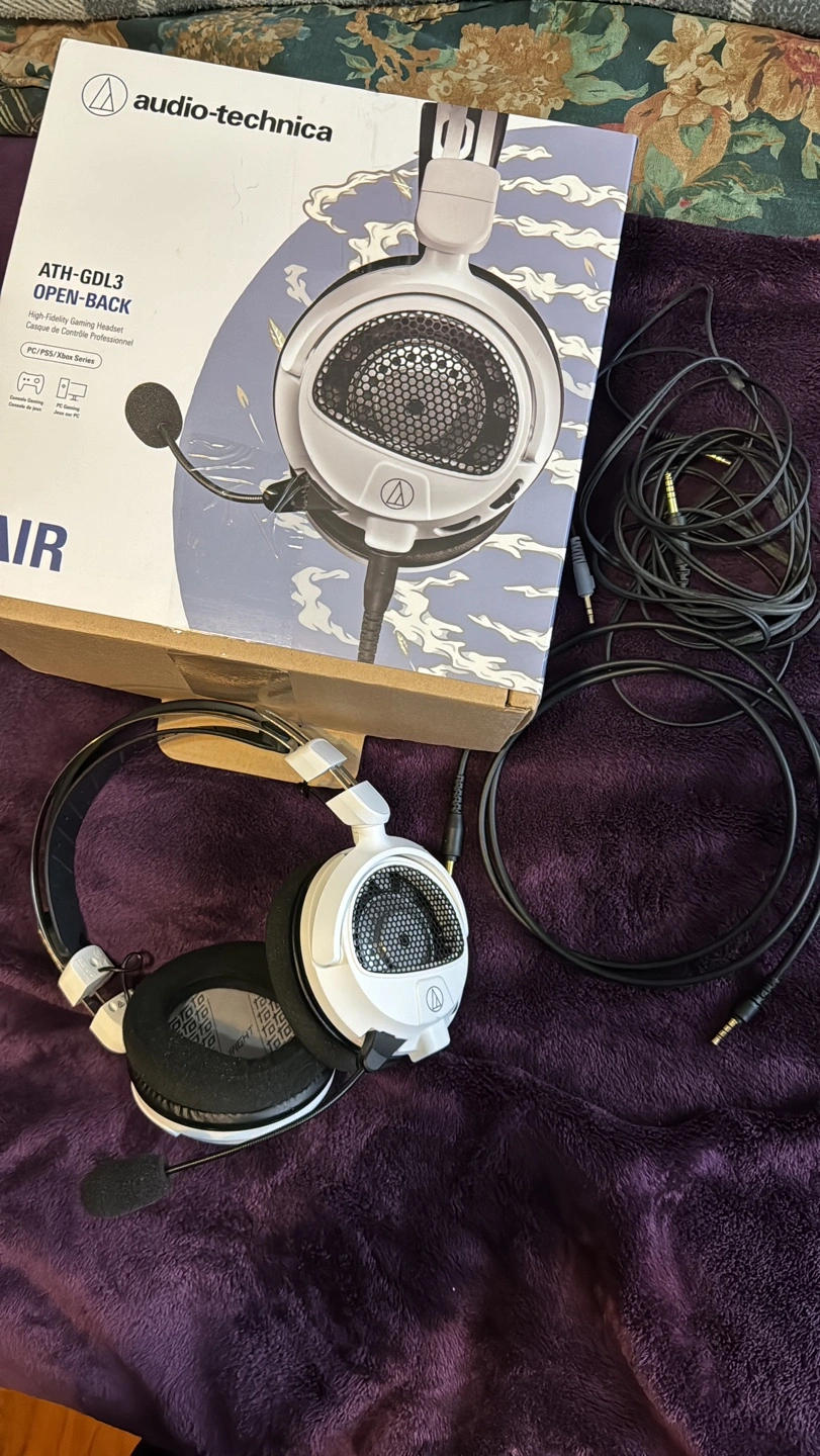 Audio-technica ATH-GDL3 Open-Back Headset in white. This is a great open back headset that is super breathable and sounds great. The mic is detachable and easy to run as normal headphones. They are super lightweight also and are what you would expect from Audio-technica.