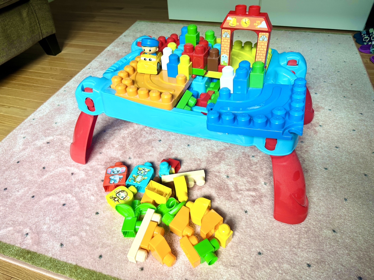 Toddler Toy - Mega Bloks building table - similar to this but some blocks are different (I don ’t have the purple bloks, for example): https://www.toysrus.ca/en/Mega-Bloks---Build-N-Learn-Table/75BC826A.html