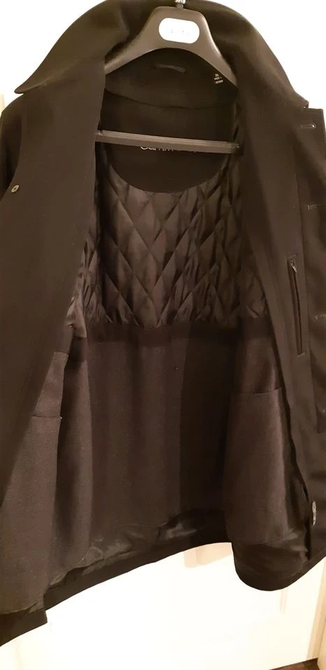 Men's black rain coat with zip liner. Size 38R. Quilted lining. Two front pockets, one inside pocket with zipper closure. Perfect for fall and winter. In like-new condition, doesn't fit me.