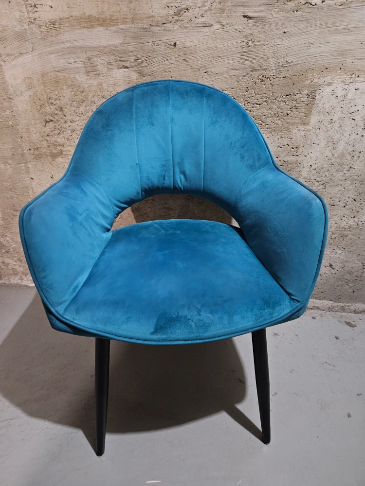 Structube Bailey velvet dining armchair. Difference in color is only due to lighting. Used but still in very good condition.