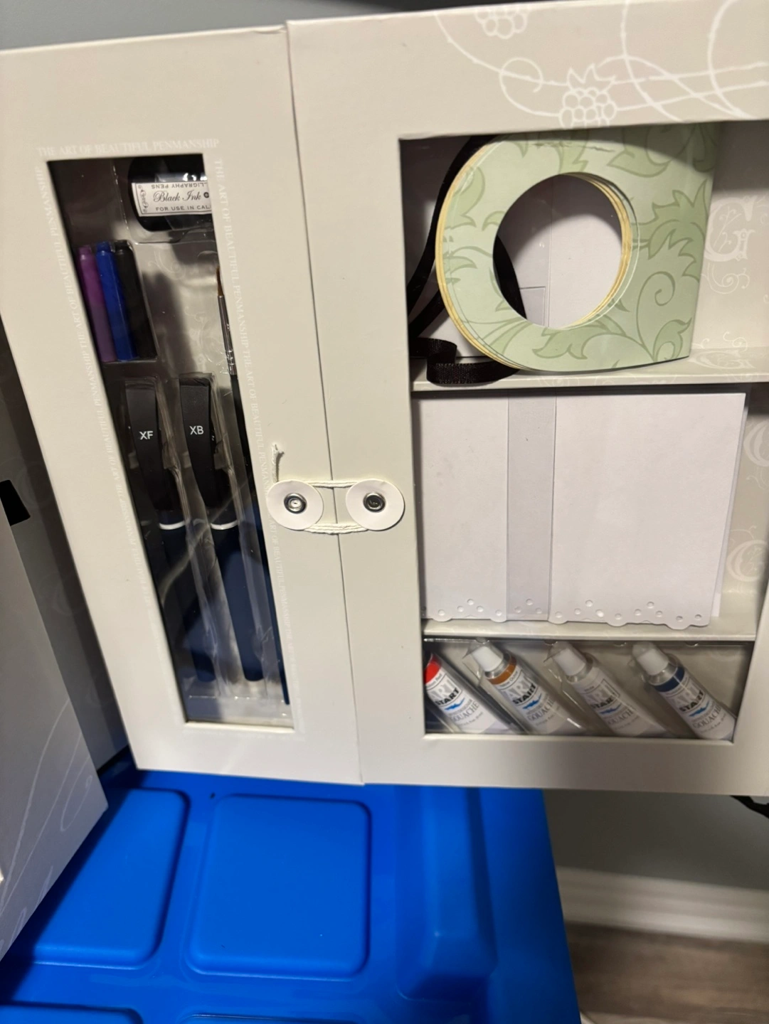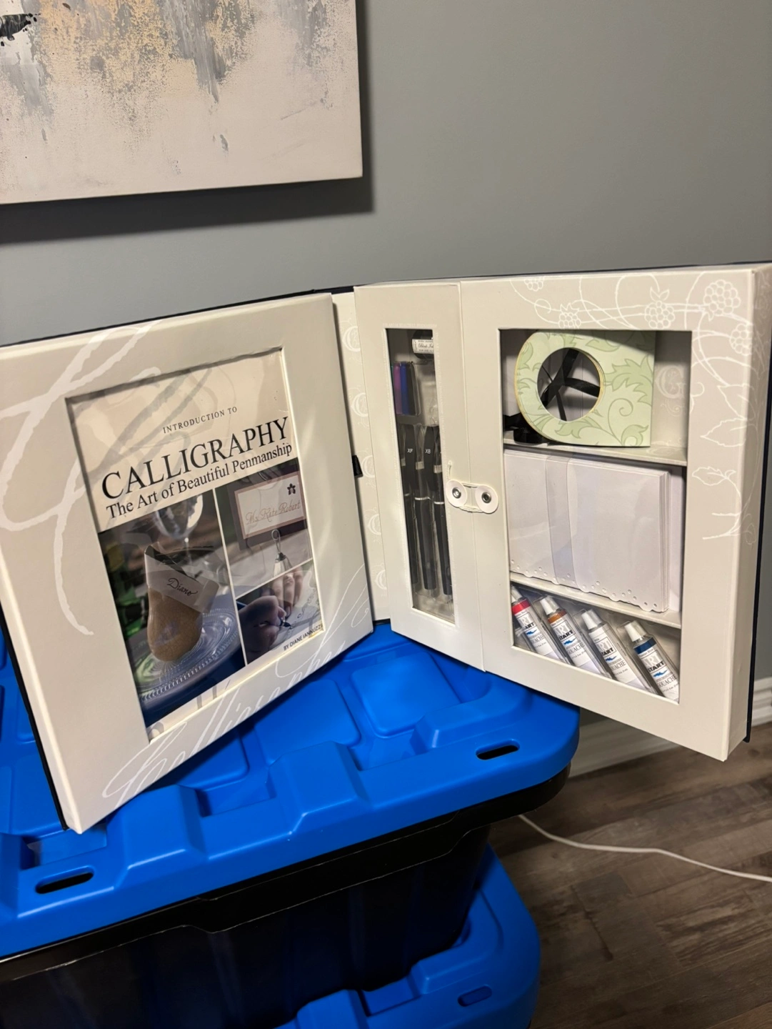 Calligraphy kit, includes book, pens, ink, and more. Presented in a beautiful folder case. Unopened.