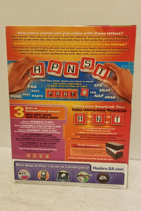 62Electronic Scrabble Flash game. Slide, swap, and shuffle to make words fast! The tiles know when you make a word. They light up and buzz every turn and keep score too.