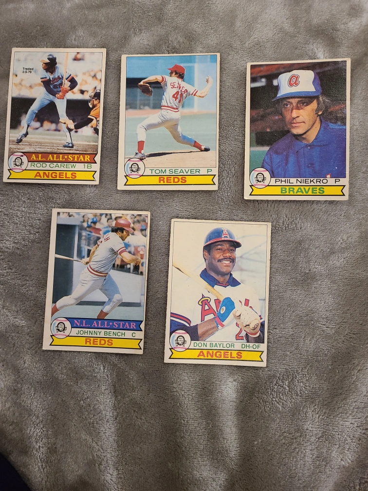 Five 1979 O Pee Chee baseball cards. Includes Tom Seaver, Johnny Bench, and Don Baylor. $5 each or all 5 for $20