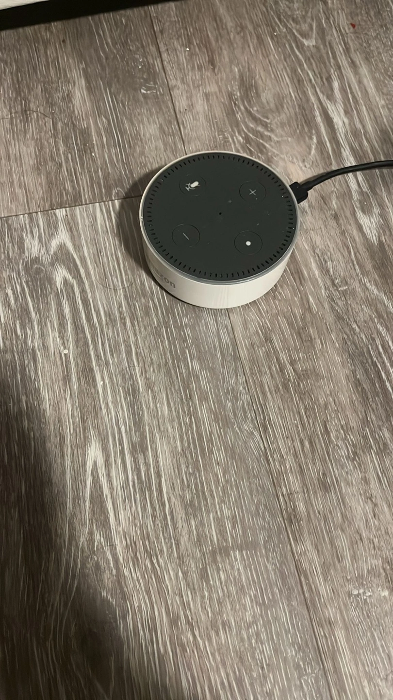 Smart speaker with a built-in microphone and speaker. Used but in good condition. Works perfectly fine.