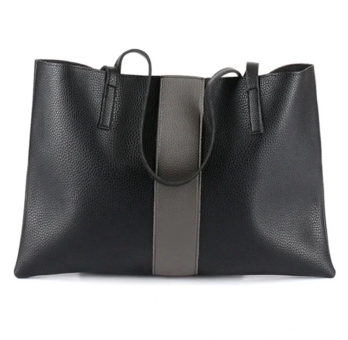 Tags: vegan leather, faux, tote bag, large bag, black tote