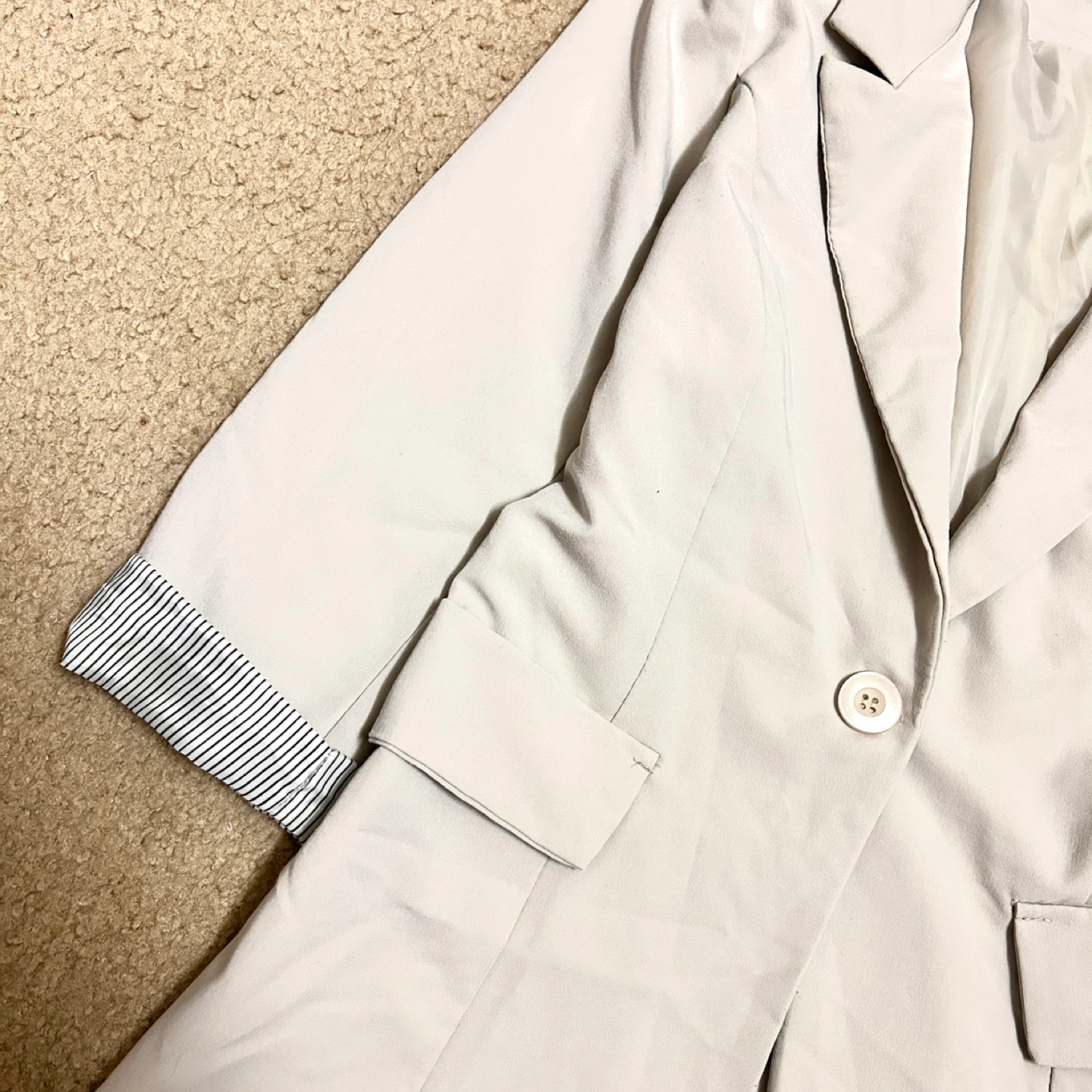 Cream Blazer with Stripe Cuffs