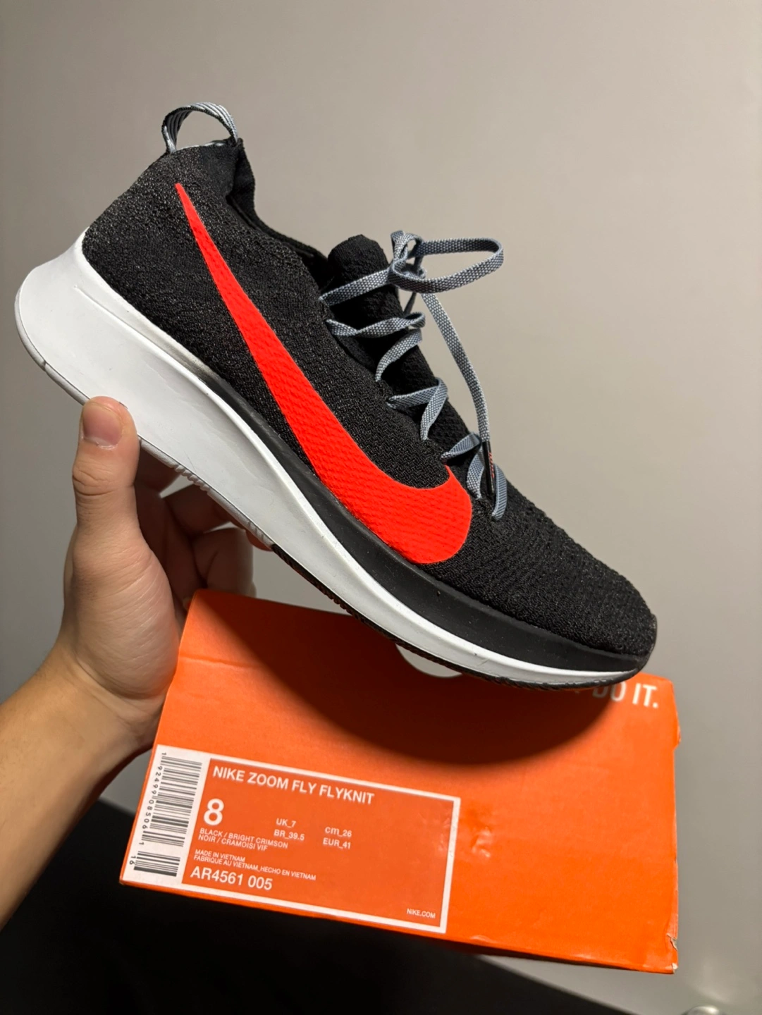 Nike Zoom Fly Flyknit Running Shoes Black Crimson Red Mens Size 8 Brand new never worn. Hard to find this shoe in this condition and size nowadays