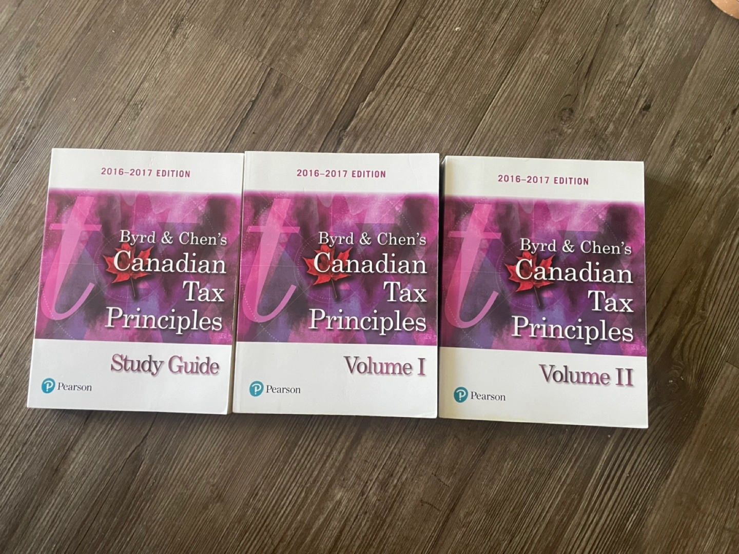 Textbook set of Byrd & Chen's Canadian Tax Principles, 2016-2017 edition. Includes Volume I, Volume II, and Study Guide.