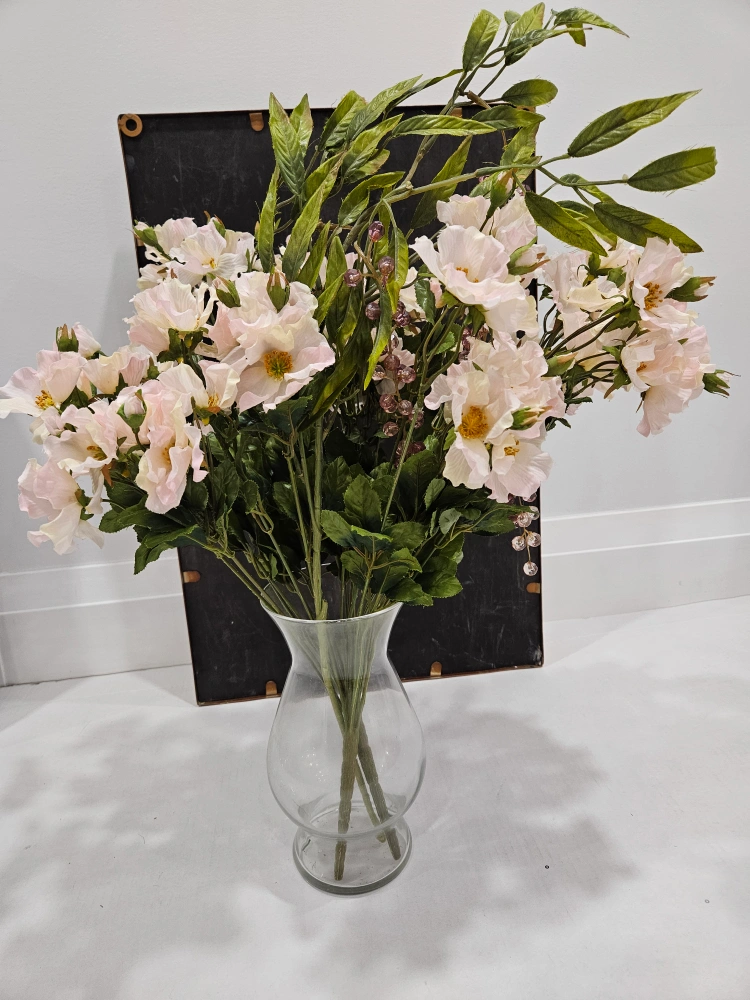 97Artificial flower bouquet in a glass vase. Perfect for adding a touch of colour to your home. Vase with flower 22 inch tall