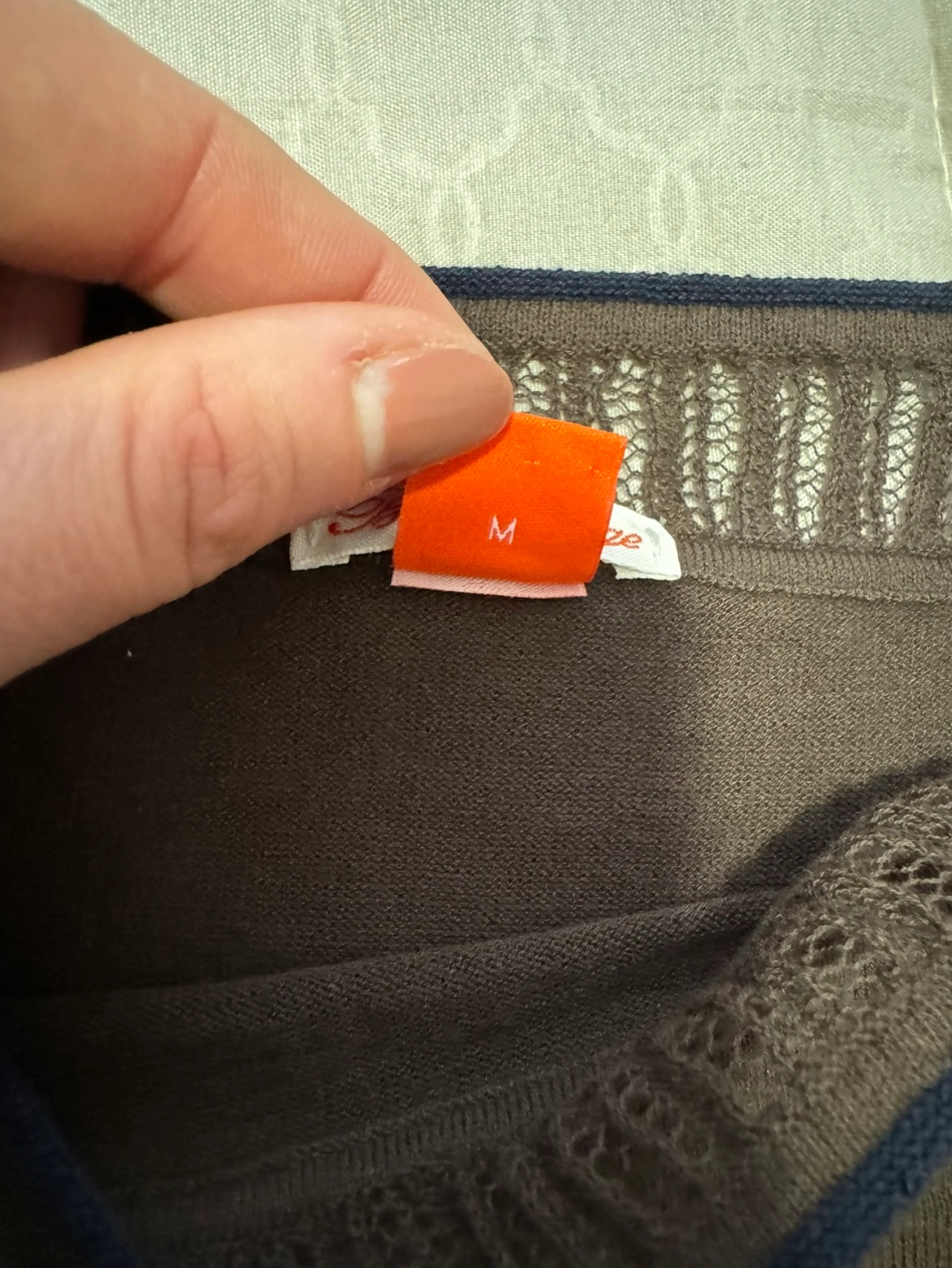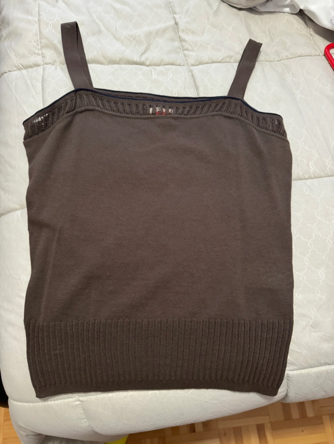 Brown sleeveless knit tank top with a lace trim at the neckline and a ribbed hem. Size M. Purchased in Rome Italy.
