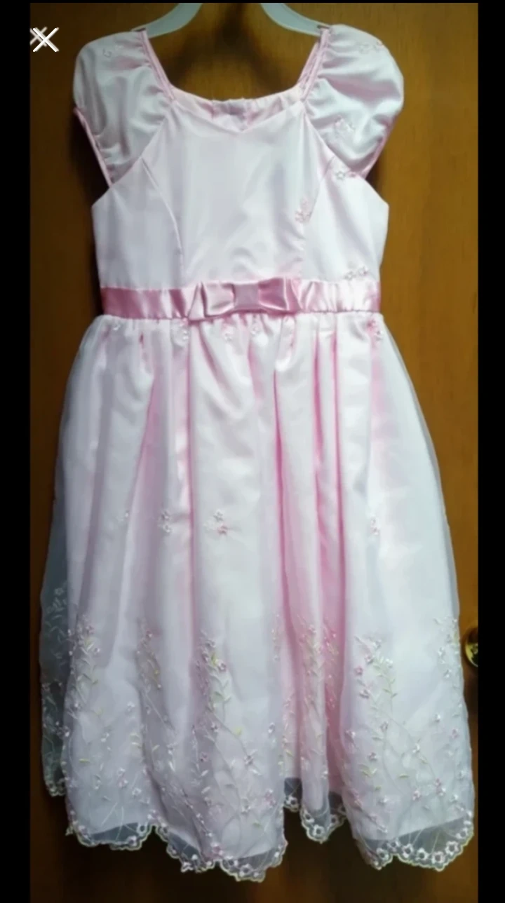 Brand new without tags girl's size 6 organza pale pink dress with satin sash and embroidered floral detail made by Jona Michelle. This beautiful dress is suitable for any special occasion such as a wedding, party or even First Communion. Dress comes with attached slip and crinoline and is brand new.