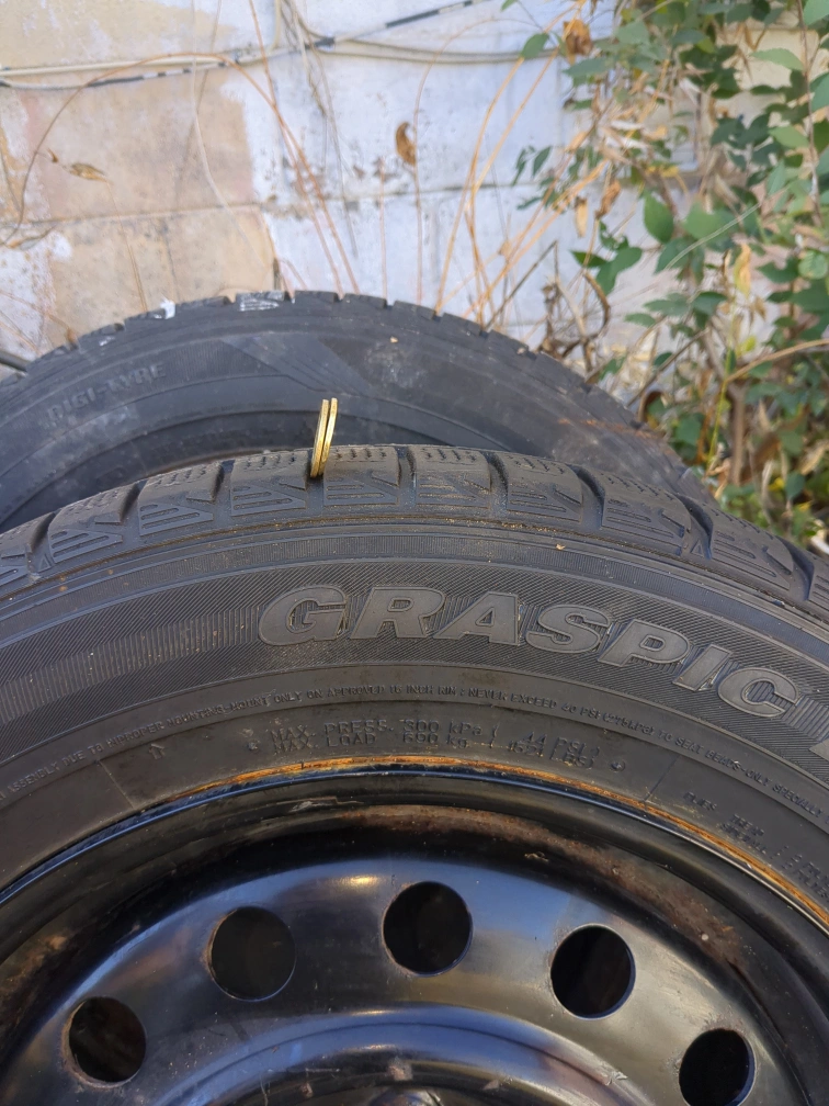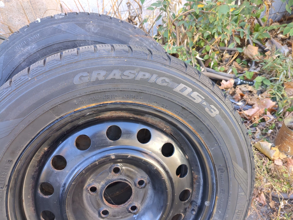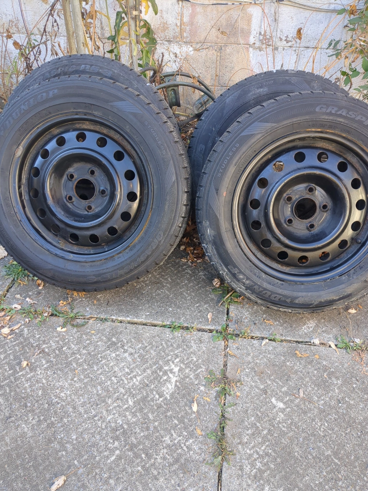 Set of 4 winter tires and rims. Good tread remaining. No TPMS sensors. Dunlop GRASPIC DS-3 20565-R16