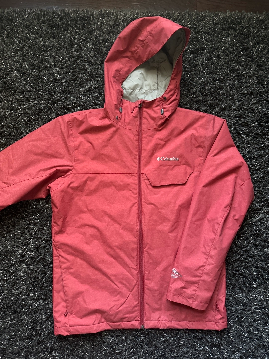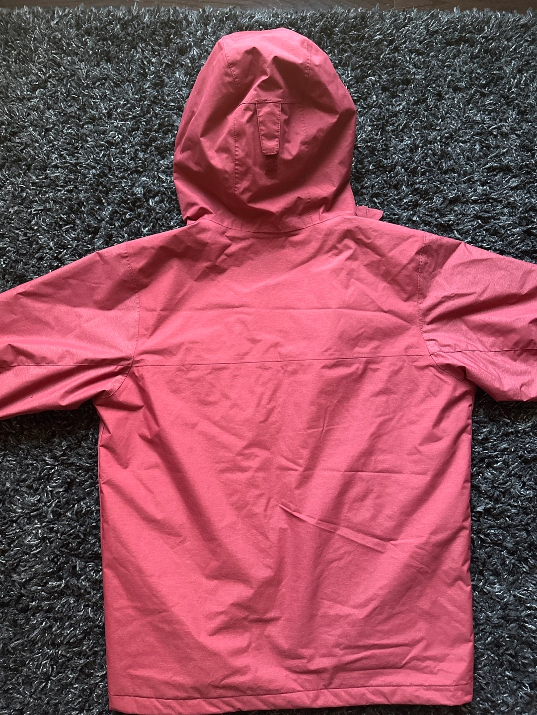 Red-Orange Hooded Jacket - Waterproof & Breathable! This vibrant jacket combines standout style with practical functionality. Its water-proof, breathable material keeps you dry and comfortable in any weather, while the hooded design and zip-up closure offer added protection against the elements. Lightly used and in great condition, it’s perfect for outdoor adventures or casual wear. Don’t miss out on this reliable, stylish piece—ready to keep you looking great rain or shine!