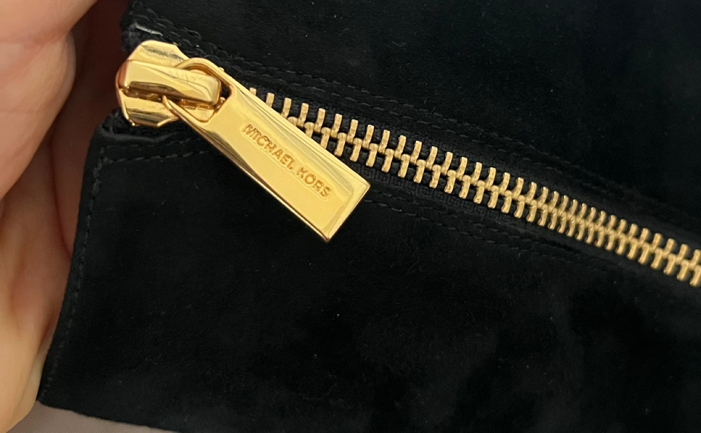 - Gold zipper detail