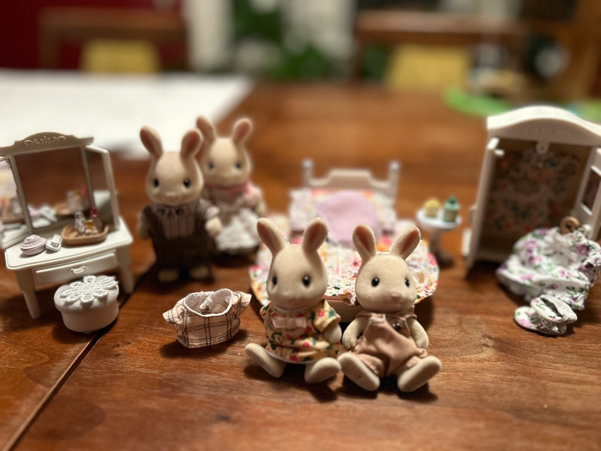 Calico Critters Rabbit Family with Furniture and Accessories