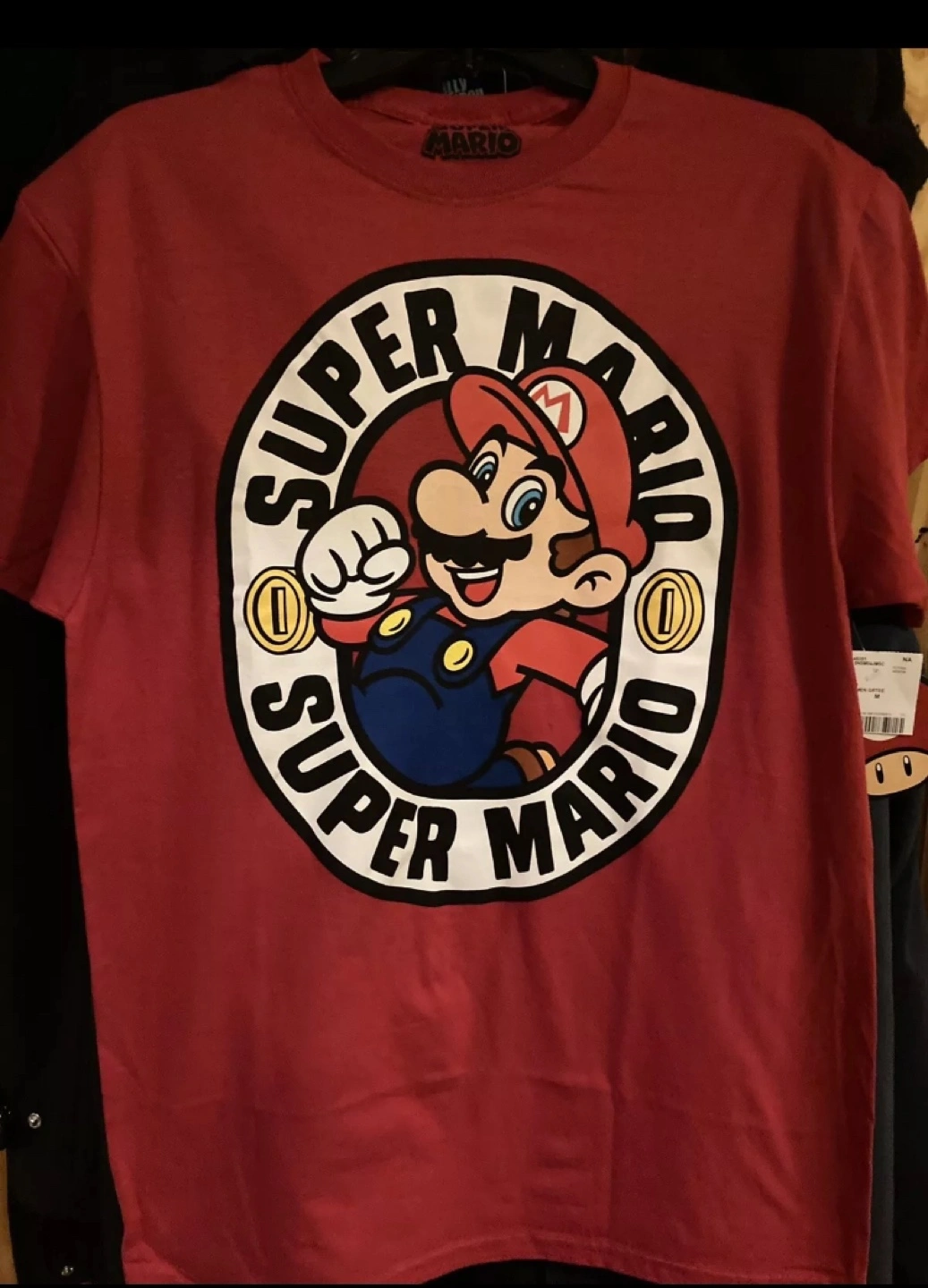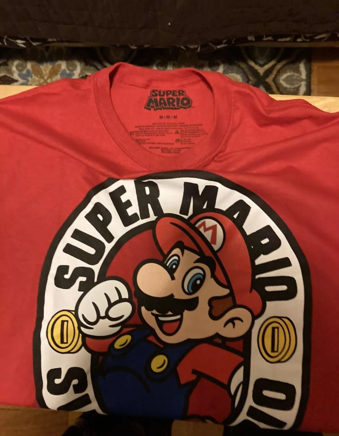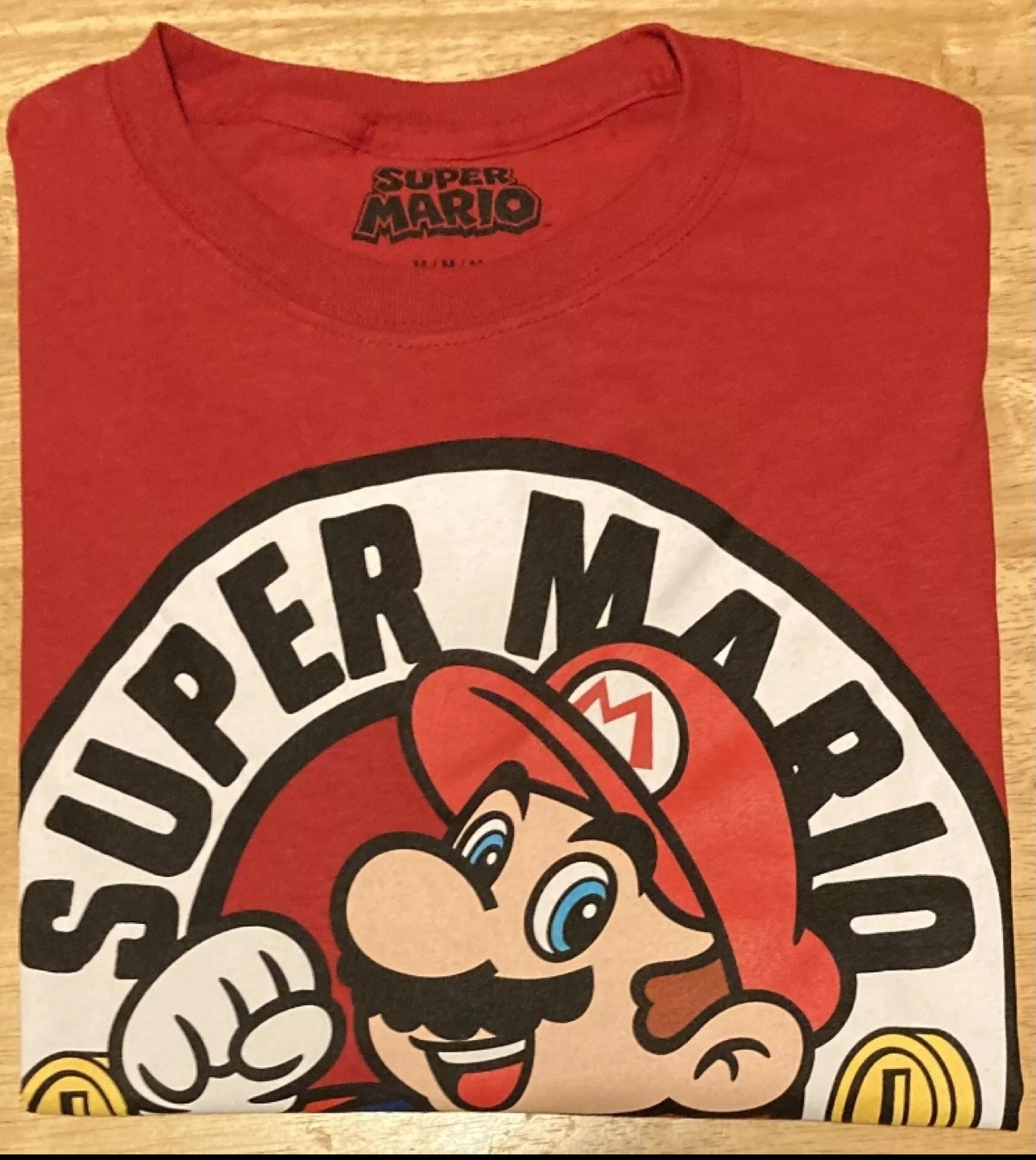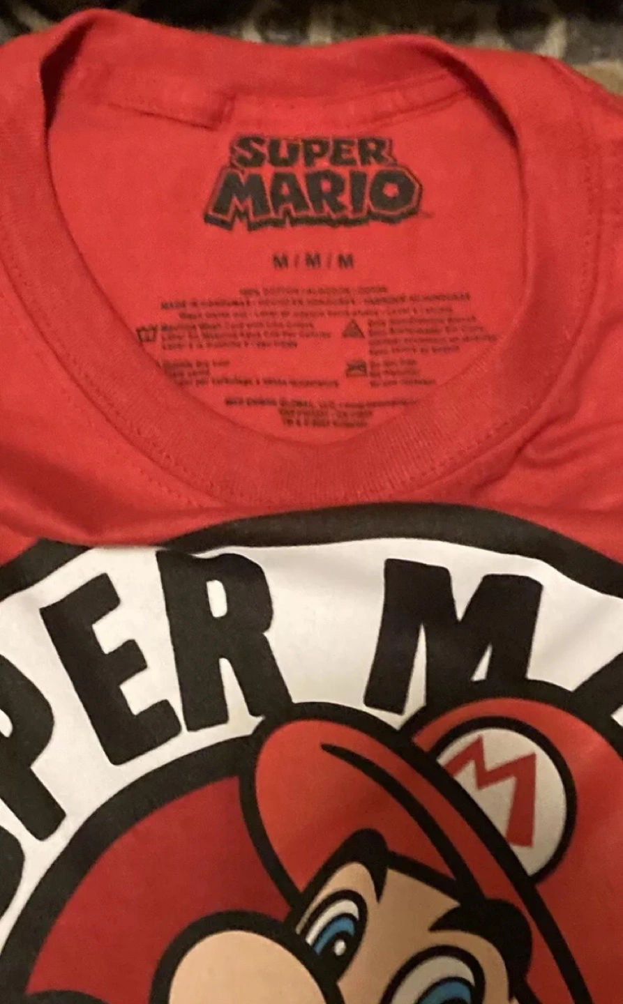 105Men's size medium red t-shirt featuring Super Mario.