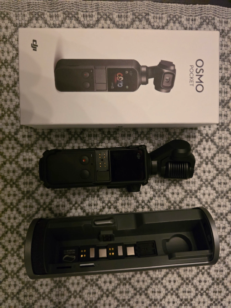 357Comes with original box and accessories including charging/carring case and extra casing for tripod.
