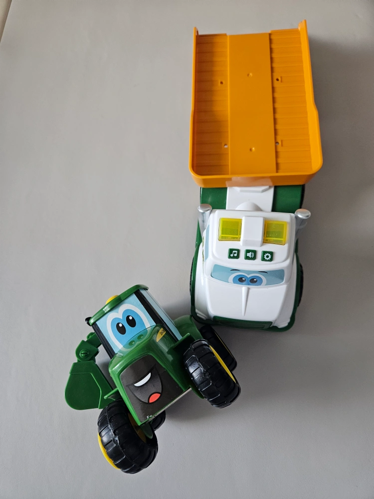 14John Deere tractor and truck toy. Both are in excellent condition.