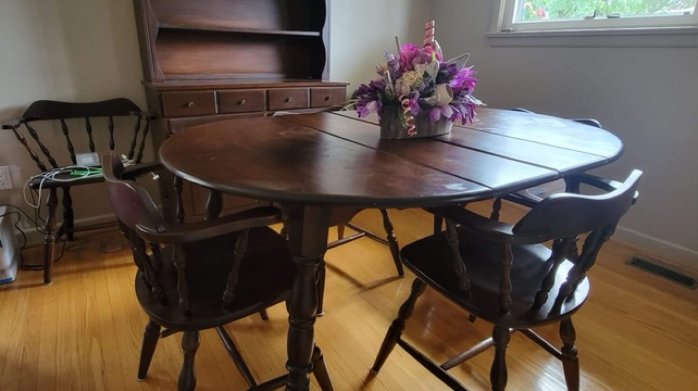 1 / 21 / 2Buy & SellTable with 6 Captains ChairsTable with 6 Captains Chairs$50Table is 60”L x 40”W as shown, including 2 leaves (10” each) with 6 Captain Chairs. Quick pick up preferred.ConditionGoodWHERE TO MEET76 Inverdon RdView MapSELLERJohnEringate212 reviews4 chats·4 favorites·395 viewsSEND CHAT TO SELLERHi John! I’m interested in your listing.Hi John! I’m interested in your listing.Get the Karrot app to chatSign In to chat