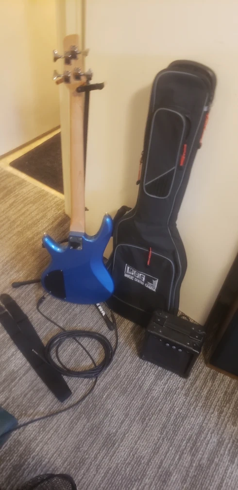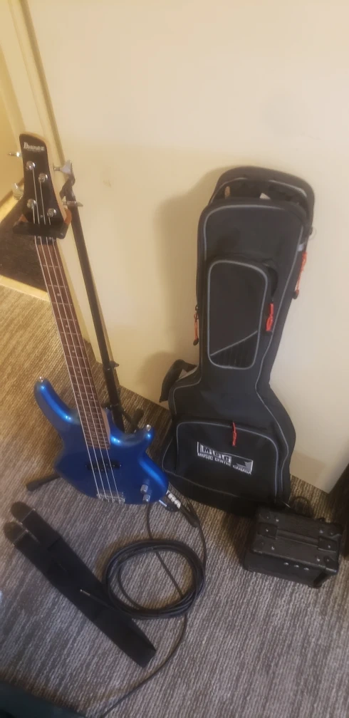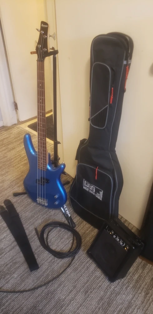 ☆Beautiful Ibanez Soundgear Blue electric bass guitar with a Gigbag and Amp,Amp Stand,Strap ,Plays and Sounds Good too. located in Marlborough NE